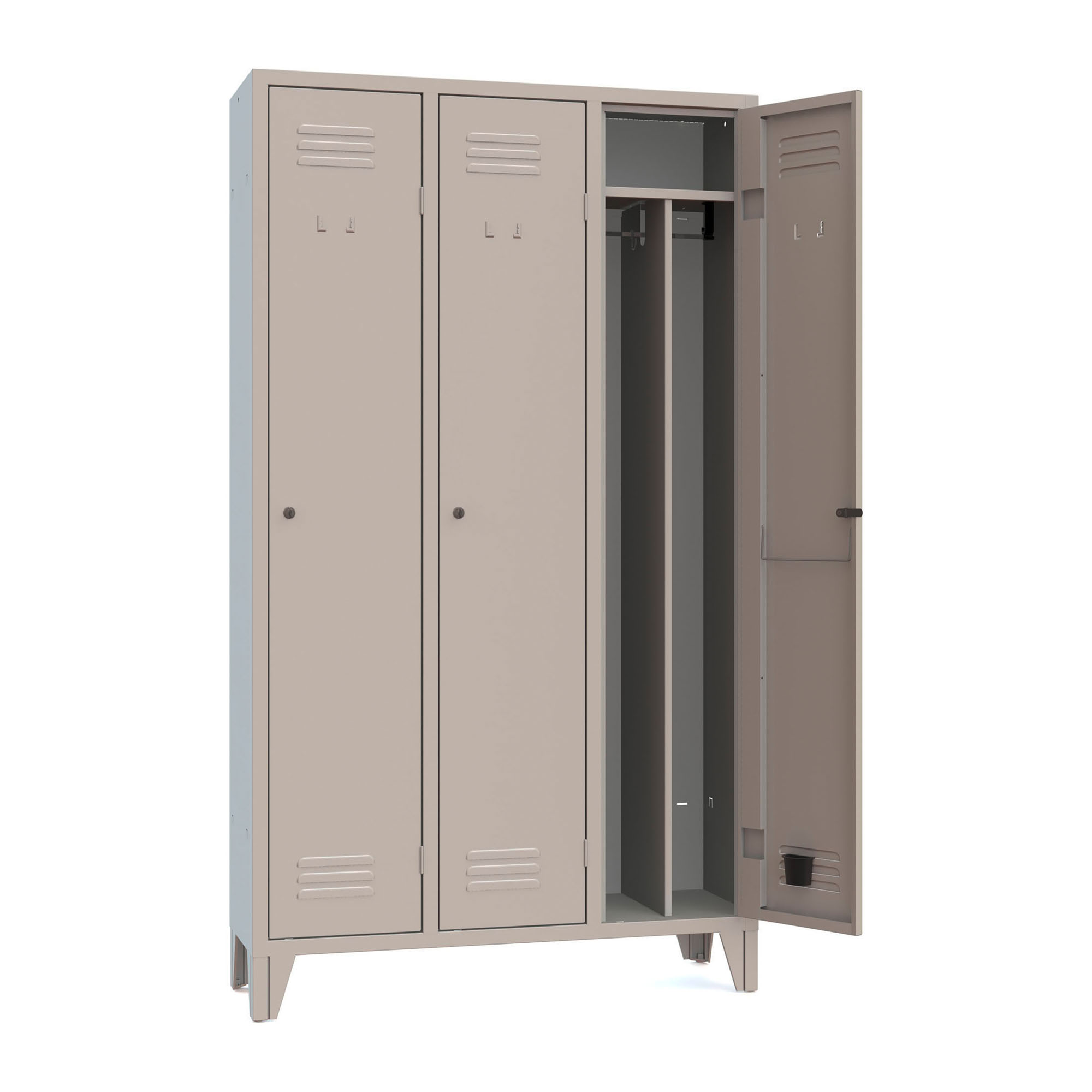 Allestimento interno: Ripiano superiore ad h.247 mm.dal tetto con asta porta grucce dotata di due ganci a "S"in acciaio zincato.