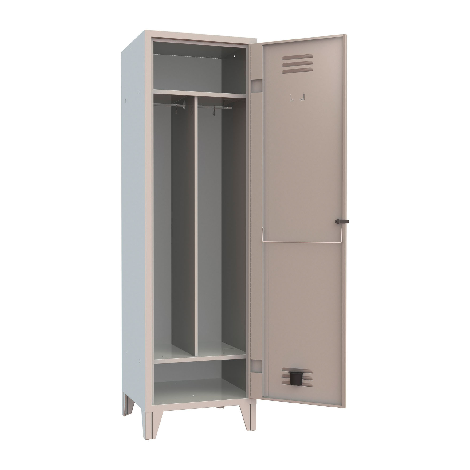Allestimento interno: Ripiano superiore ad h.247 mm.dal tetto con asta porta grucce dotata di due ganci a "S"in acciaio