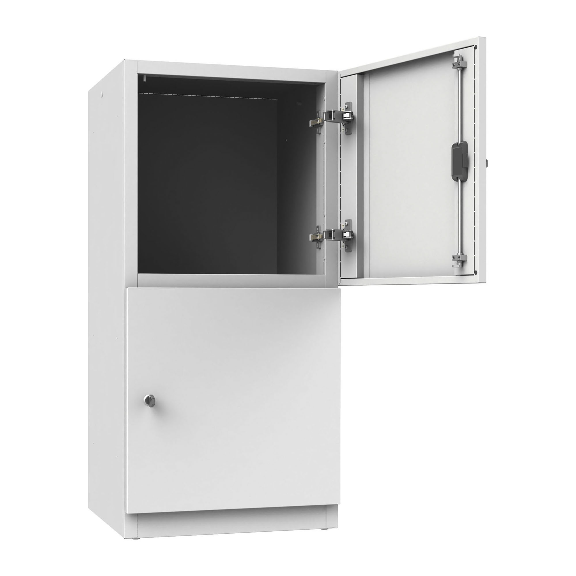 Ante battenti dotate di 2 cerniere interne ammortizzate con rotazione a 135°, canottatura di rinforzo sui due lati e pieghe antitaglio su tre ordini sui lati rimanenti.
