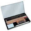 Descrizione dettagliataAstuccio in metallo contenente: 1 matita Progresso 6B, 1 matita "Negro", 1 matita carboncino, 1 matita creta bianca, 1 matita creta sanguigna, 1 matita creta seppia scura, 1 creta grigia, 1 creta sanguigna, 1 sfumino diam. 7mm, 1 gomma pane.