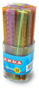 Descrizione dettagliataRighello 15cm, stretto 2cm, in materia plastica termoresistente speciale di grande trasparenza e durezza superficiale. Barattolo da 50 pezzi in quattro colori assortiti trasparenti ( giallo, azzurro, arancio, fuxia).