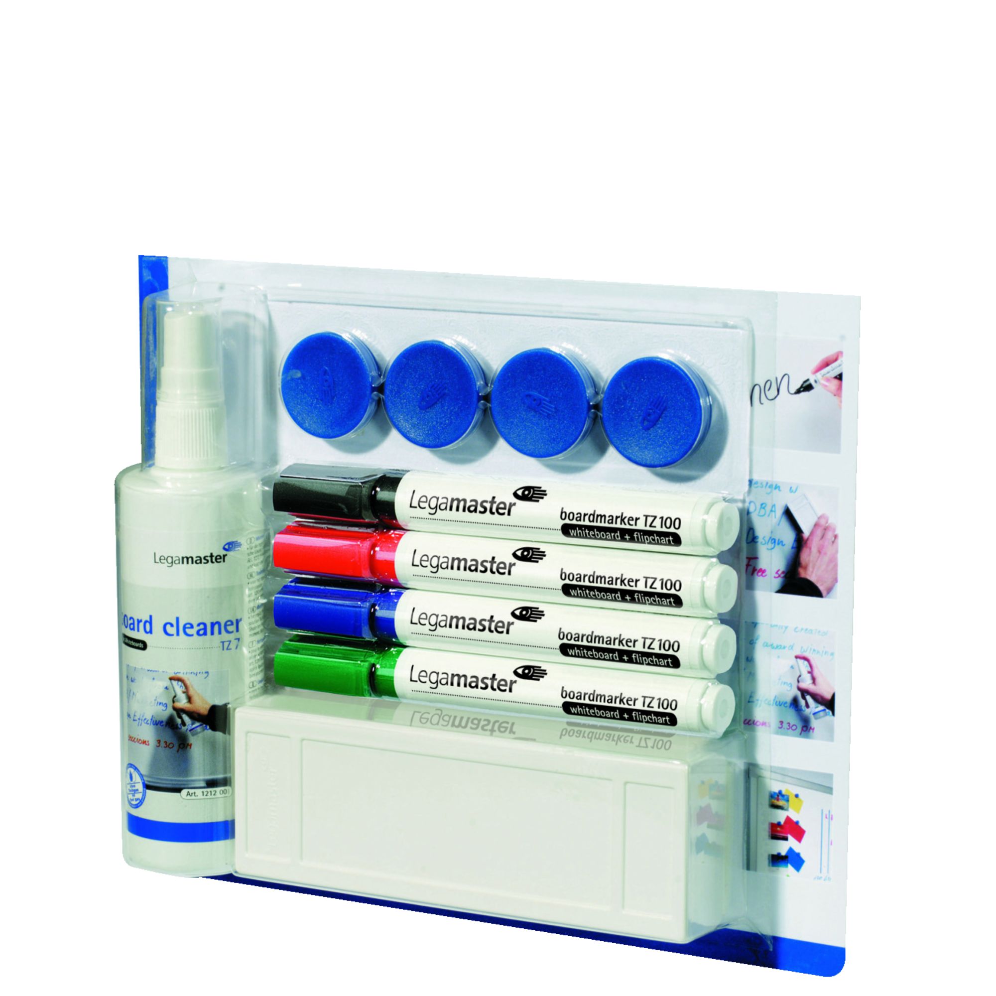 Descrizione dettagliataSet di base per lavagne bianche. Contenuto:– 4 marcatori TZ 100 (nero, rosso, blu, verde)– 1 piccolo cancellino– 1 detergente TZ 7, 125 ml– 4 magneti (30 mm, portata max 850 g)