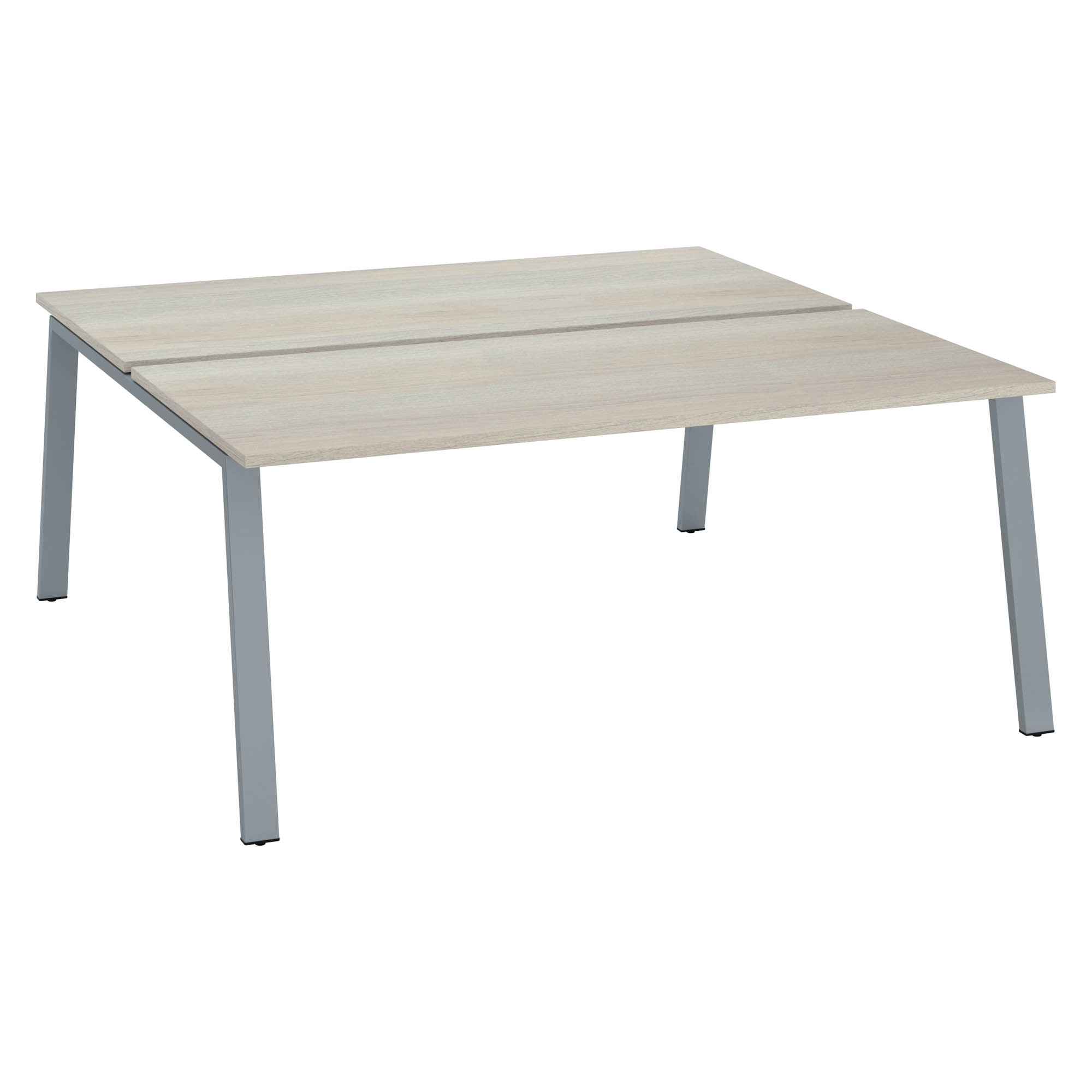 Utilizza questo bench Ecla con il design di ispirazione scandinava. Questo bench è dotato di un piano robusto progettato in truciolato con rivestimento in melaminico e trattato antiriflesso. Dotato di spessore ABS 2 mm bordi abbinati alla decorazione. La scrivania ha una base in metallo a forma di arco inclinato e una trave di rinforzo sotto l'intera lunghezza del piano. Ha cilindri di regolazione in altezza, ideale per regolare il livello della scrivania alla vostra dimensione.Passa facilmente da un bench 2 scrivanie a un bench con 6 o più.Per ottenere un bench 6 scrivanie: ordina 1 quantità ""bench 2 scrivanie"" e 2 quantità ""bench 2 scrivanie modulo aggiuntivo"".4 larghezze di vassoi a scelta: 120, 140, 160, 180 cm2