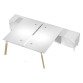 Bench manageriali senza pannello divisorio da 2 postazioni p 80 x h 72,5 cm contrapposte con spazio di 5,2 cm fra i due desktop per il passaggio dei cavi con due mobili di servizio portanti integrati reversibili a destra o sinistra in fase di montaggio.