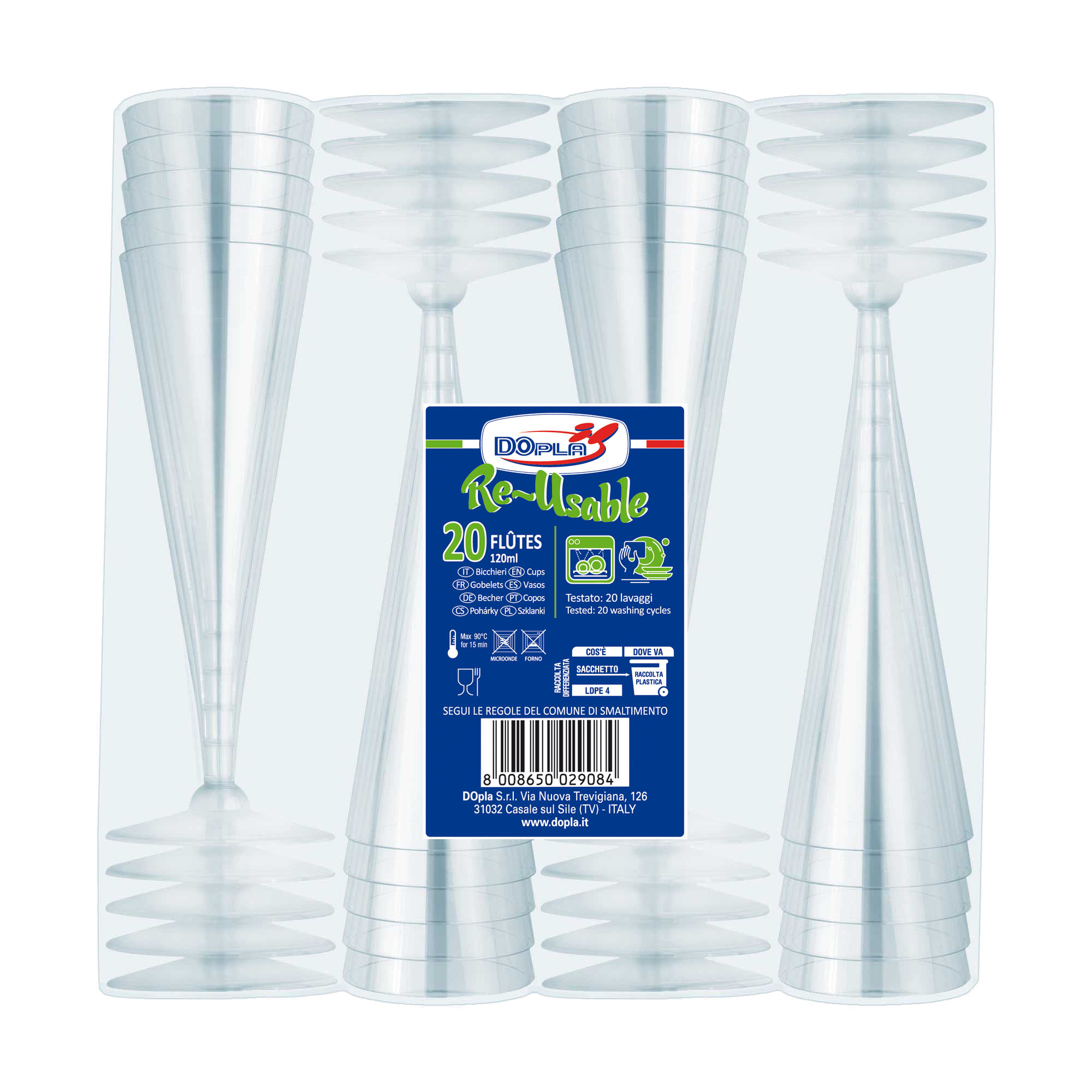 Descrizione dettagliataFlutes in plastica (polistirolo) trasparente. Riutilizzabili in lavastoviglie per 20 lavaggi. Articolo escluiso da SUP