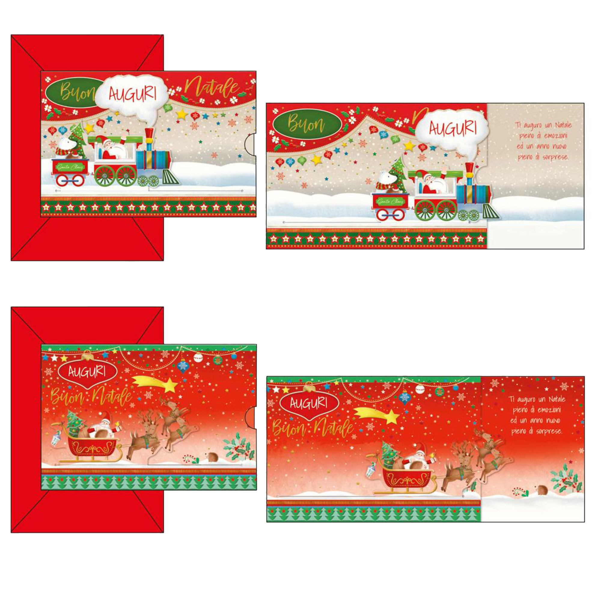 Descrizione dettagliataBiglietti doppi formato 11,7x17cm. Stampa offset su cartoncino liscio bianco. Blisterati 1 busta/1 biglietto. Fantasie assortite.