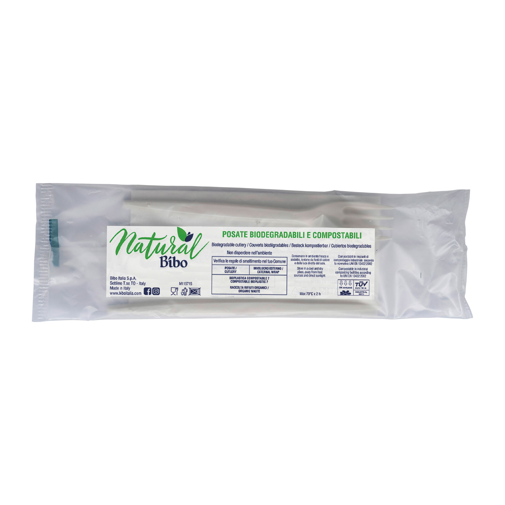 Bis posate (forchetta, coltello) con tovagliolo 1 velo - 29x29 cm - in bioplastica - 50 pezzi