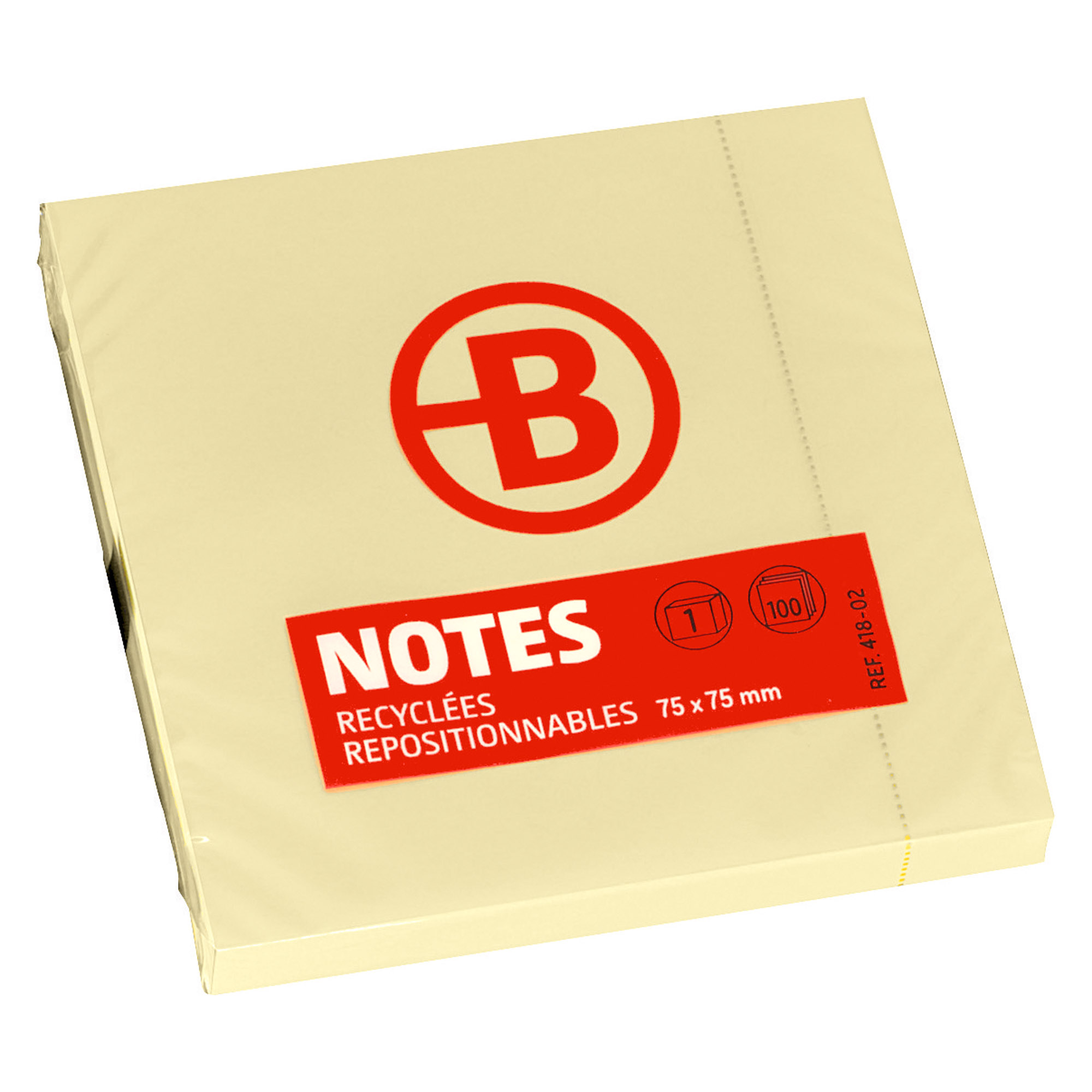 Blocco appunti  75x75 mm da 100 fogli notes riposizionabili riciclati giallo Bruneau