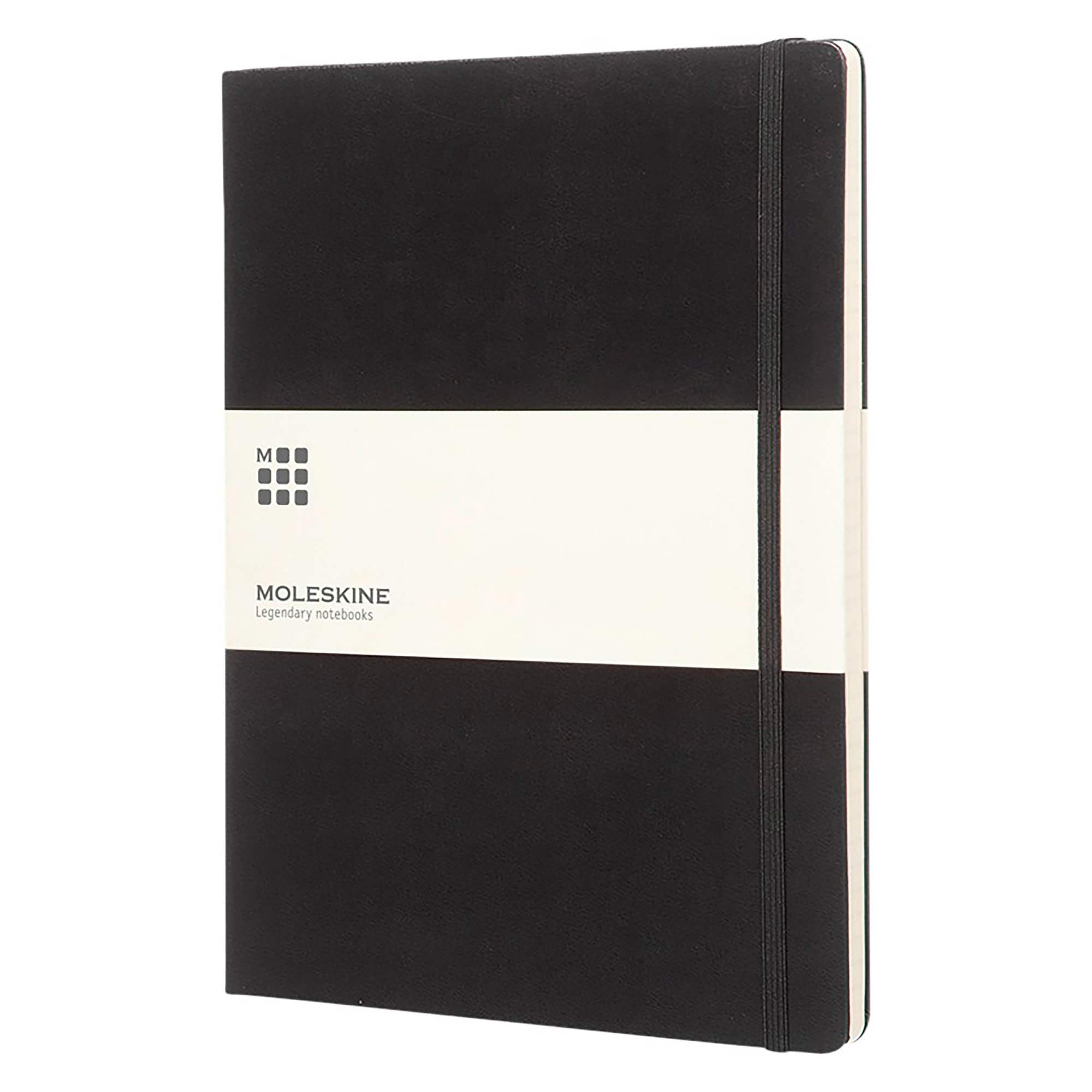 - Copertina rigida con angoli arrotondati e chiusura con elastico nero verticale.