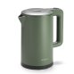 BOLLITORE CORDLESS: compatto con capacità da 1,7 L di acqua, parti fredde, cordless, base girevole 360°, piedini antiscivolo, corpo in materiale plastico termoisolante con interno in acciaio inox, indicatore LED, pulsante per aprire coperchio, spegnimento automatico, doppio termostato, filtro in acciaio, 2.200W, colore verde salvia
