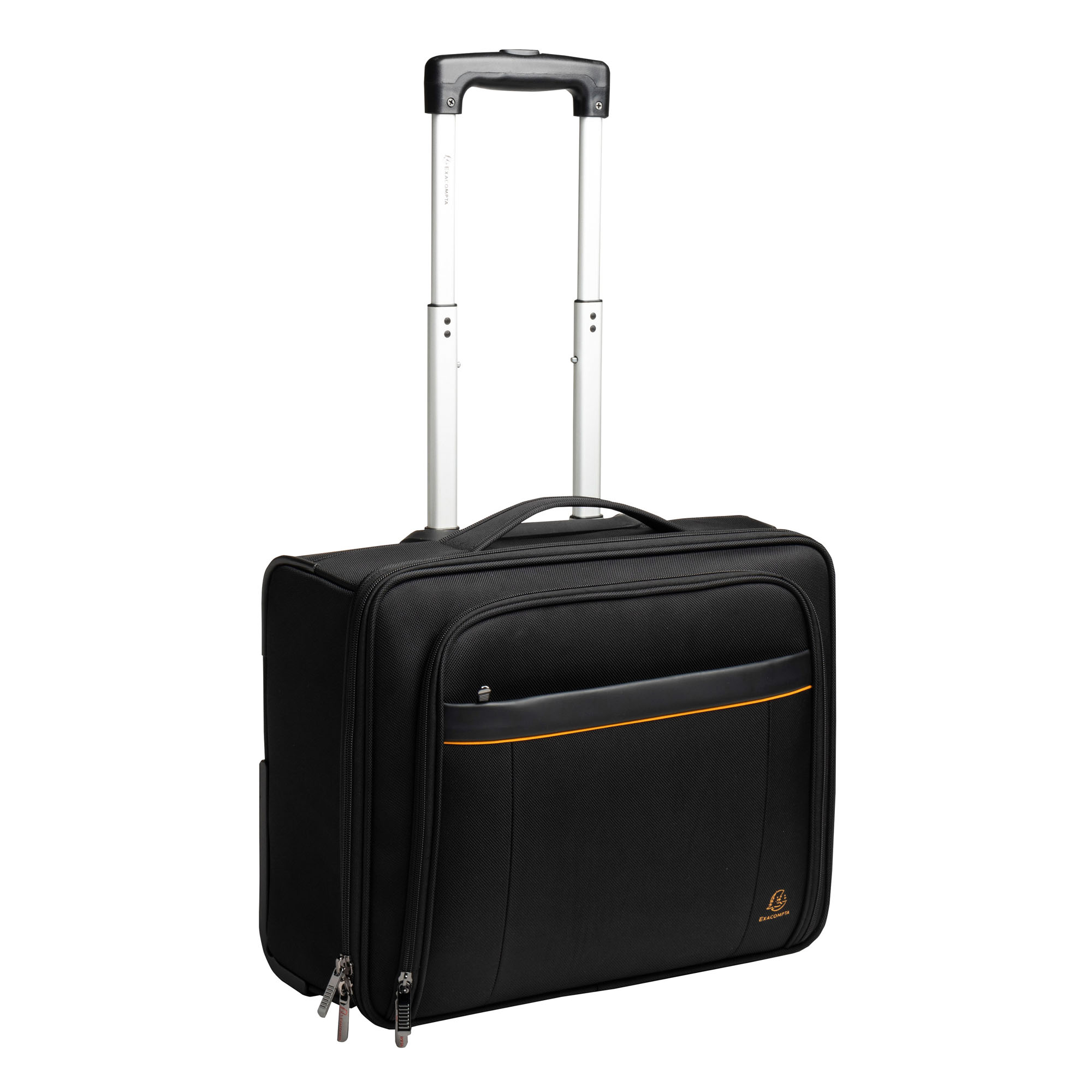 Trolley versione slim con rotelle e manico telescopico. - Lo scomparto principale contiene una tasca imbottita separata per un tablet o laptop fino a 15,6", nonché cinghie trasversali per mantenere qualche vestiti e cartelle. Passante sul retro per far scorrere il trolley lungo il manico telescopico di una valigia.