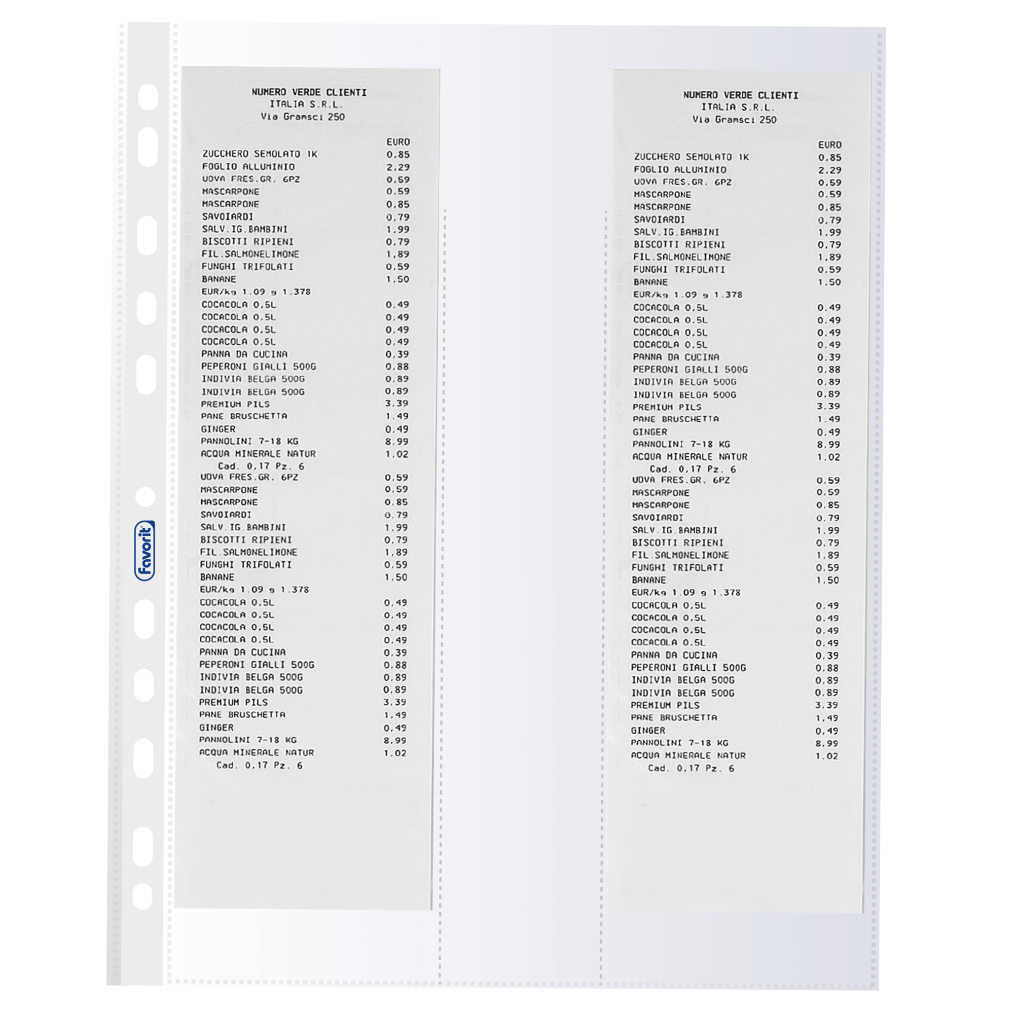 Buste forate - per 4 scontrini fiscali - 25,2 x 30,7 cm - Favorit - conf. 10 pezzi