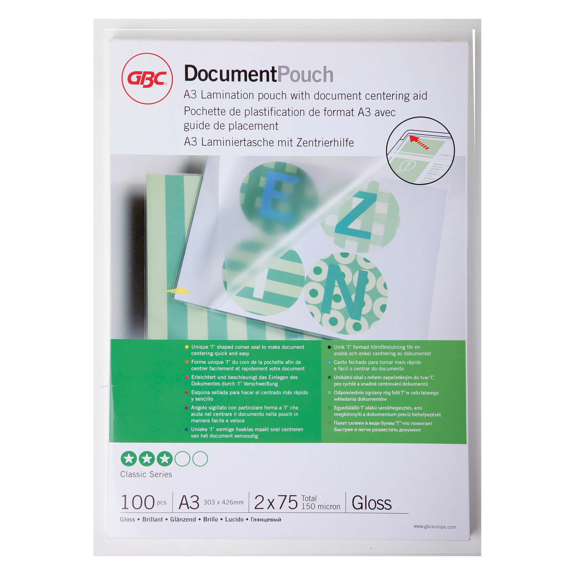 Una gamma di accessori progettata per perfezionare e personalizzare i tuoi documenti plastificati. GBC Pouch Document A3 - 2x75 micron - lucide (100).