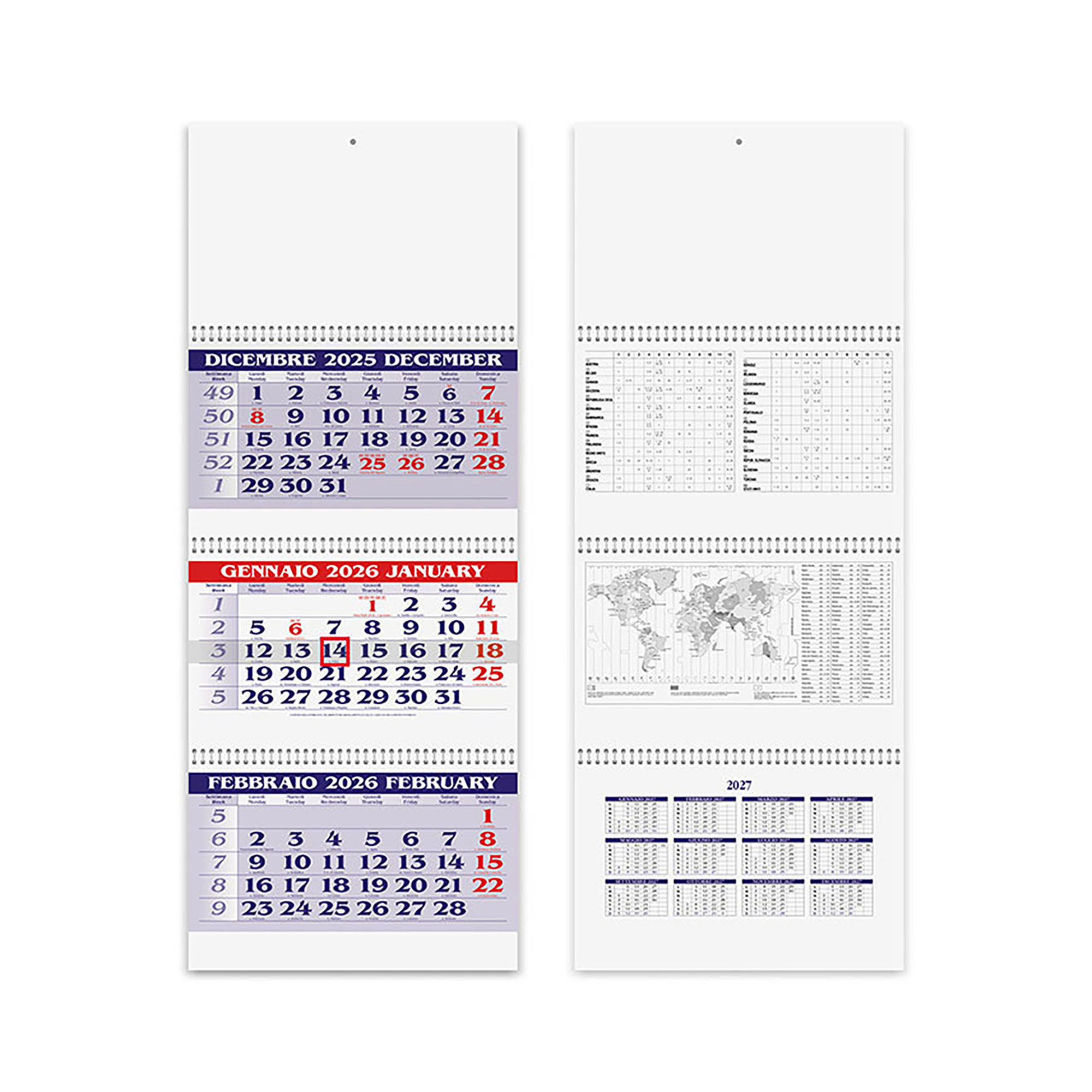 Altri prodotti popolari in questa sezioneCalendario da muro trimestrale olandese bicolore A3 30x47 cm1,69 € IVA escl.1,15 € IVA escl.Promo -31%Calendario da parete 14 mesi 55 x 43 cm7,29 € IVA escl.5,15 € IVA escl.Promo -29%Calendario da muro trittico 3 spirali 31x86 cm4,99 € IVA escl.3,45 € IVA escl.Promo -30%Calendario da parete 14 mesi 43 x 33,5 cm5,09 € IVA escl.3,60 € IVA escl.Promo -29%