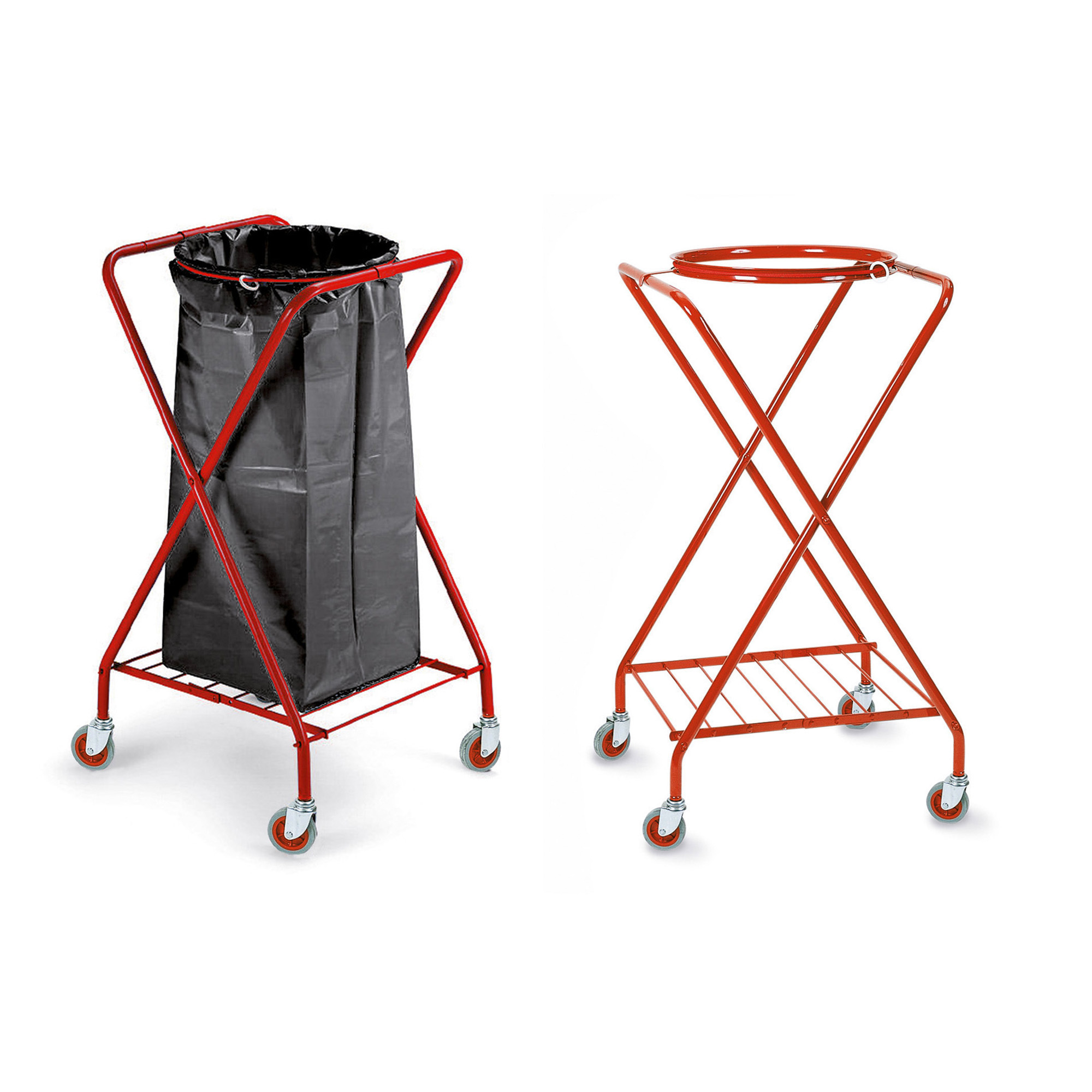 Carrello portasacco a “X” in metallo verniciato.