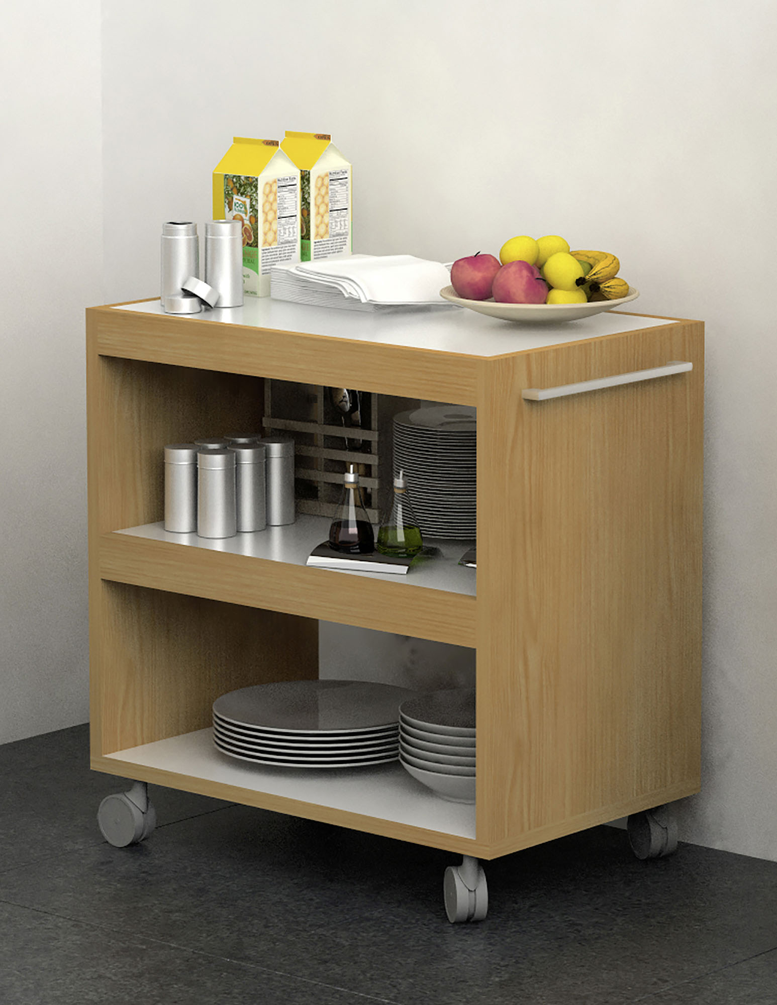 Completo di maniglia su entrambi i lati stretti. Dotato di freno su due ruote.