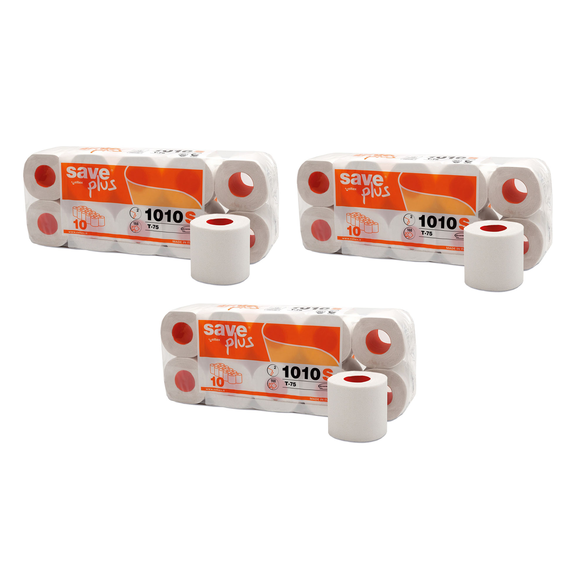 Carta igienica Celtex Save Plus - 2 veli 160 strappi - 3 confezioni da 10 rotoli