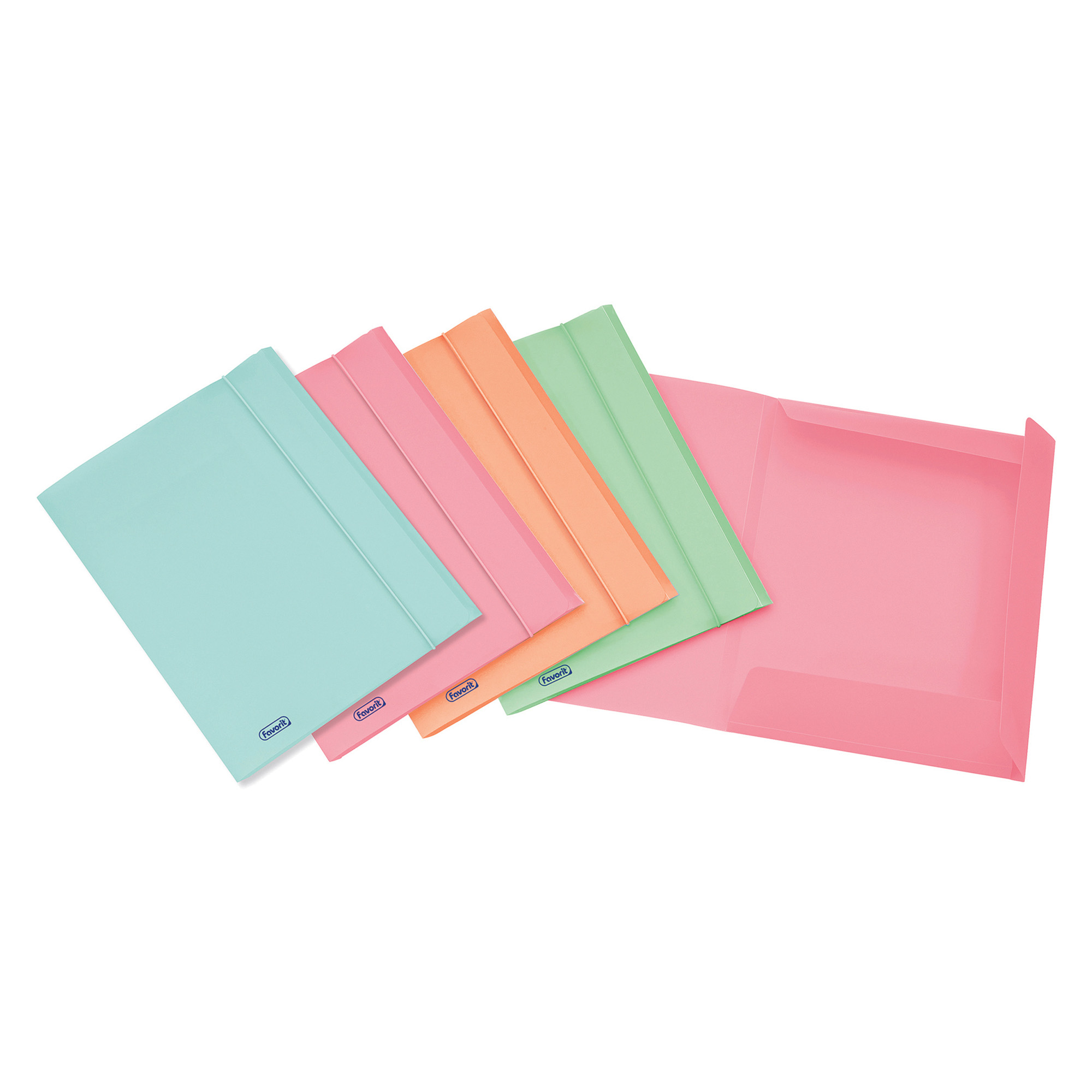 Descrizione dettagliataCartella 3 lembi in polipropilene opaco dai colori pastello. Copertina ad altissimo spessore ed elastico tondo in tinta. cartellina sagomabile fino a 1 cm.