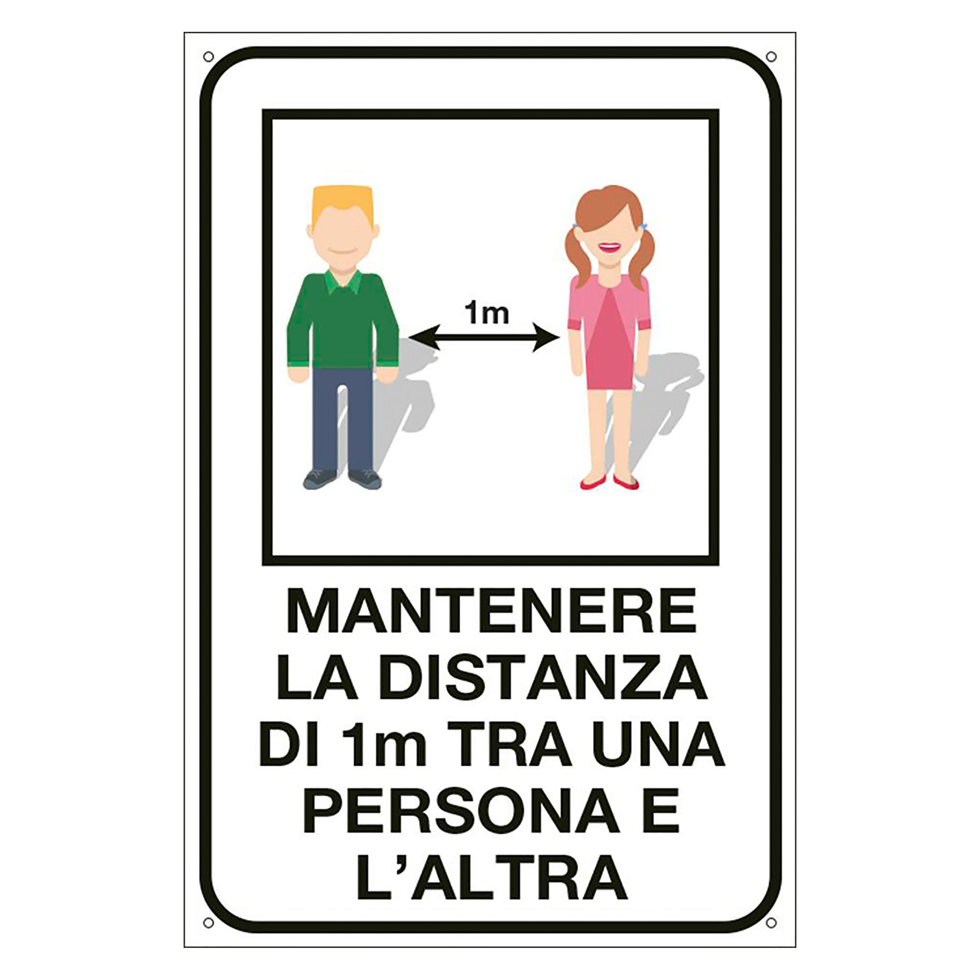 Descrizione dettagliataPellicola adesiva in PVC. Cartello “Mantenere la distanza di 1m tra una persona e l’altra”.