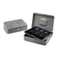 Cassetta portavalori in acciaio verniciato con scomparto interno portamonete e chiusura a cilindo con 2 chiavi.