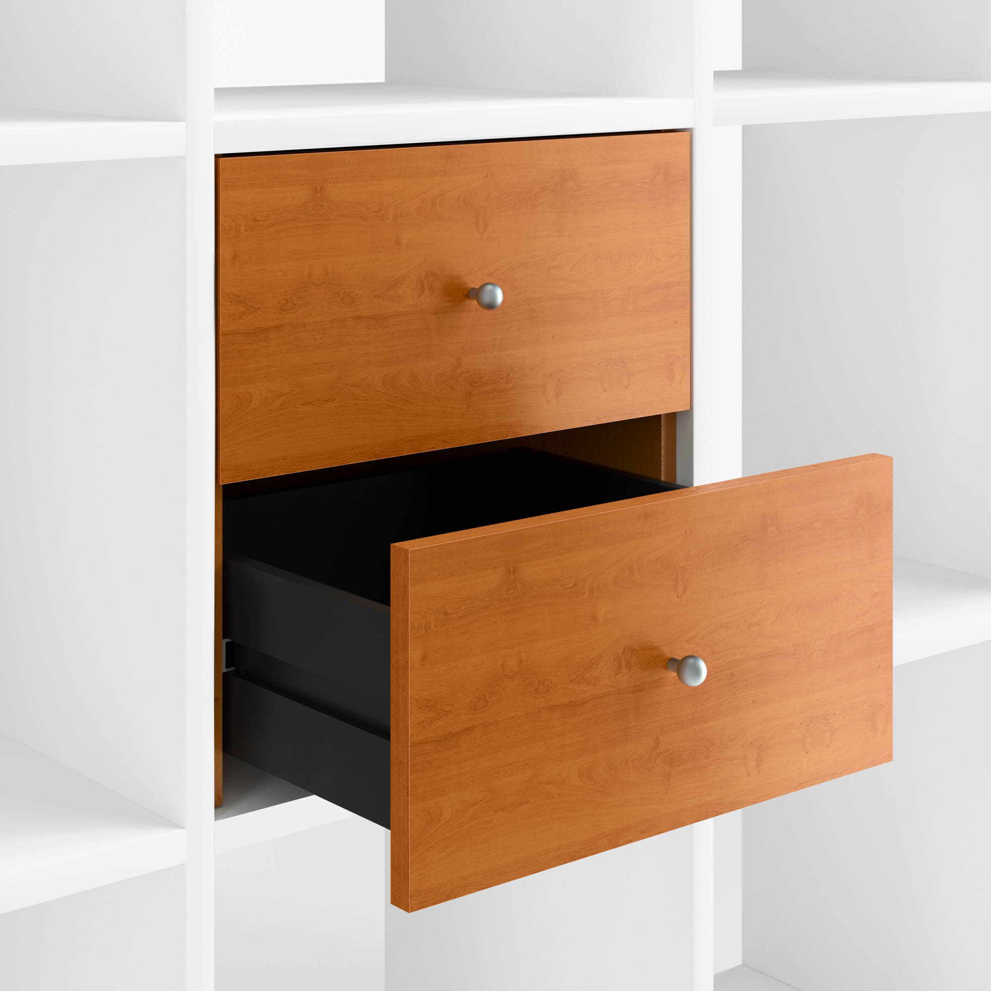 Set di cassetti per librerie a caselle Maxicubes disponibile nei colori bianco, noce, grigio alluminio, faggio, rovere, nero, rosso neon, verde neon, arancione, azzurro, viola, e prugna.