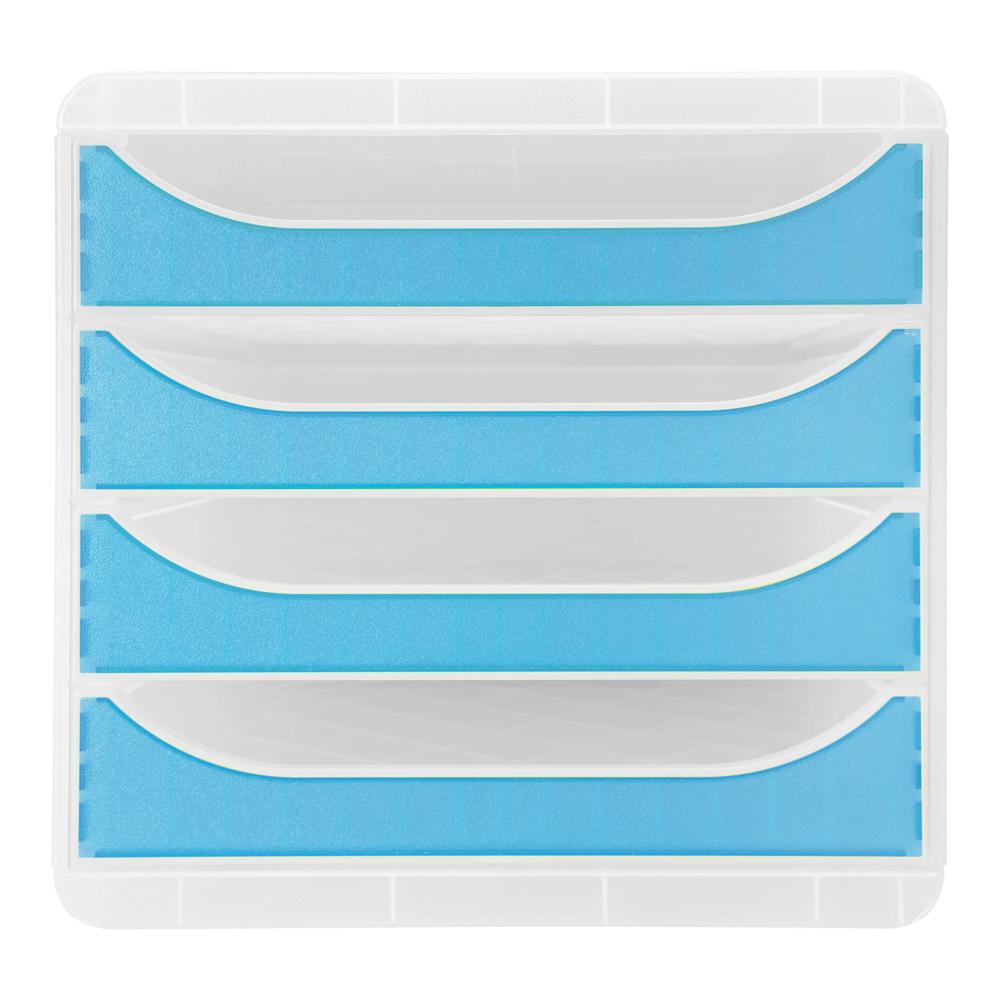 Cassettiera a 4 cassetti per documenti (A4, A4+ o 24x32 cm). Struttura monoblocco in polistirolo nero, ultrarigido, superficie antistatica, robusta e resistente agli urti e antigraffio. Cassetti aperti alti 5 cm, consentono l'inserimento diretto dei documenti nel cassetto senza doverlo aprire. Scorrimento perfetto dei cassetti con blocco d'arresto a fine corsa. Dimensioni (PxlxAlt) 347x278x267 mm.