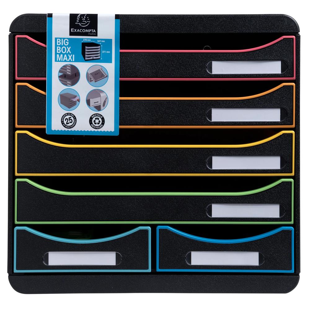 Cassettiera a 6 cassetti : 4 cassetti consentono l'inserimento diretto dei documenti (A4, A4+ o 24x32 cm) nel cassetto senza doverlo aprire e 2 cassetti piccoli per riporre oggestica.
