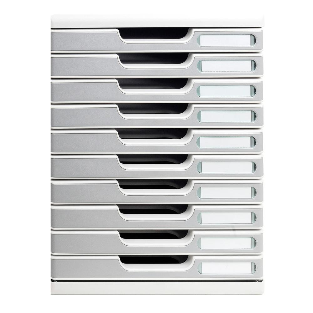Cassettiera composta da 10 cassetti alti 2,6 cm per archiviare documenti (A4, A4+ o 24x32 cm).
