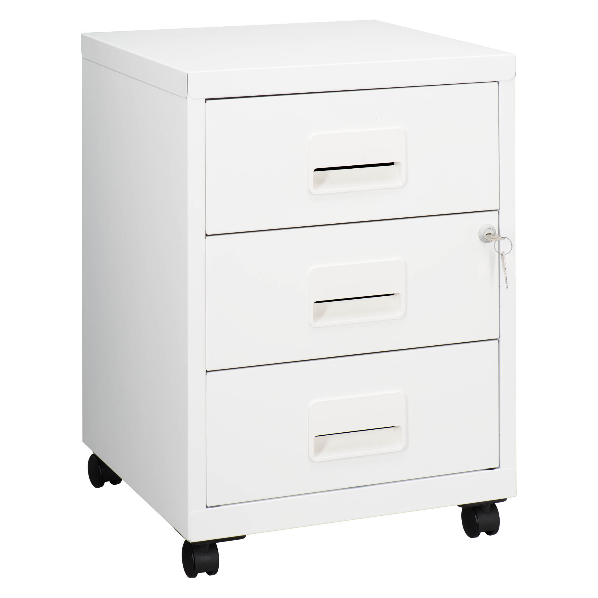 • Design moderno, resistente monoblocco in lamiera d’acciaio verniciata a polveri epossidiche antigraffio • Dotata di serratura centralizzata per i primi 2 cassetti (2 chiavi in dotazione), per garantire una migliore protezione del contenuto contro furti o indiscrezioni • Con 4 ruote multidirezionali per un facile spostamento • Dimensioni: H 57 x L 40 x P 40 cm • Dimensioni utili di un cassetto: H 12,5 x L 32,5 x P 38 cm.
