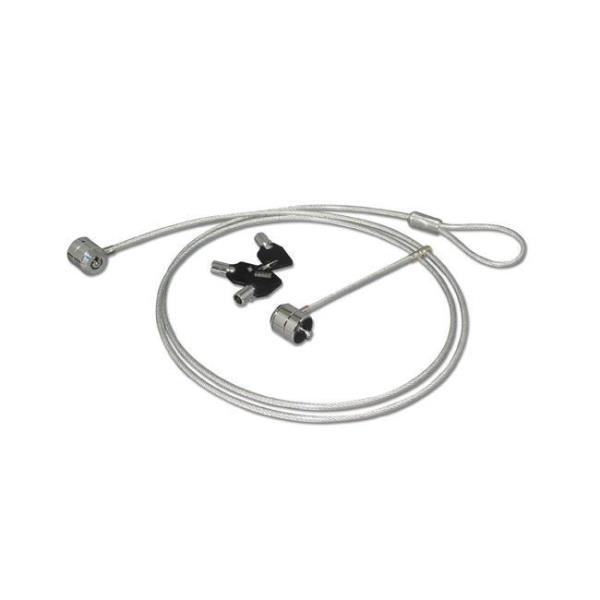 Cavo di sicurezza in acciaio con doppio lucchetto, dotato di chiave per assicurare il bloccaggio del notebook e di altre apparecchiature con slot di sicurezza (monitor, videoproiettori, docking station , ecc.)