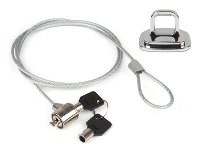 Hamlet Notebook Lock 150KR è un cavo di sicurezza da 150 cm dotato di una piastra di ancoraggio in acciaio con anello passante da utilizzare come punto di fissaggio su una scrivania o una parete laddove non sia disponibile un altro punto di ancoraggio sicuro. La piasta può essere semplicemente fissata con la base autoadesiva oppure utilizzando le viti in dotazione per aumentare al massimo la sicurezza di tenuta. Il cavo e il lucchetto sono realizzati in acciaio di alta qualità per offrire la massima protezione dai tentativi di furto. Il lucchetto sfrutta lo slot di sicurezza già presente sul computer ed è fornito di 2 chiavi uguali, di cui una di scorta. La lunghezza del cavo è 150 cm.