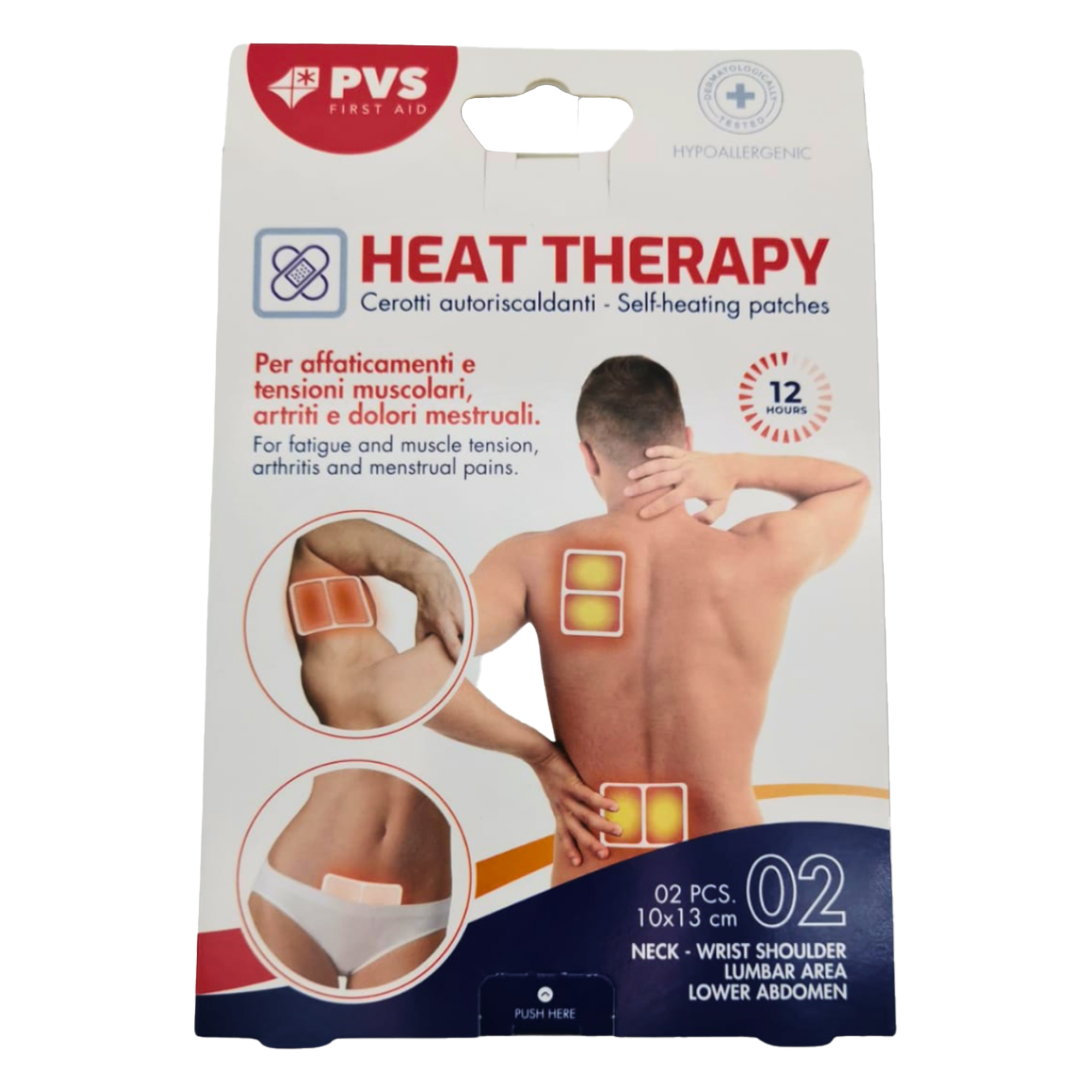 Cerotto riscaldante 10x13cm. Per affaticamenti e tensioni muscolari, artriti e dolori mestruali. Utile per donare sollievo ai muscoli tesi ed affaticati o affetti da crampi fornendo calore piacevole e ben tollerato per un periodo di circa 12 ore. La sua forma sagomata si adatta alle diverse zone di applicazione. Composto di un materiale soffice e piacevole al tatto, presenta particolari celle contenenti elementi naturali quali polvere di ferro, carbone e sale che a contatto con l’ossigeno dell’aria sviluppano calore. Dermatologicamente testato. Non contiene farmaci.