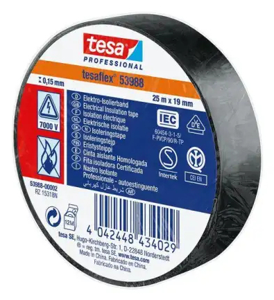 Il nastro isolante elettrico tesaflex 53988 è un aiuto affidabile per elettricisti, meccanici e altri tuttofare. È caratterizzato da un materiale di base relativamente spesso, un alto grado di flessibilità e ottime prestazioni adesive (anche su acciaio ea basse temperature). Il nastro isolante in PVC non è adatto solo per isolare e contrassegnare fili, ma anche per riparazioni e raggruppamenti. Poiché è disponibile in molti colori - rosso, blu, marrone, nero, bianco, grigio, verde, giallo e giallo-verde -, può anche essere utilizzato come nastro adesivo per marcatura. tesaflex 53988 è certificato secondo tutti gli standard pertinenti e può essere utilizzato facilmente.