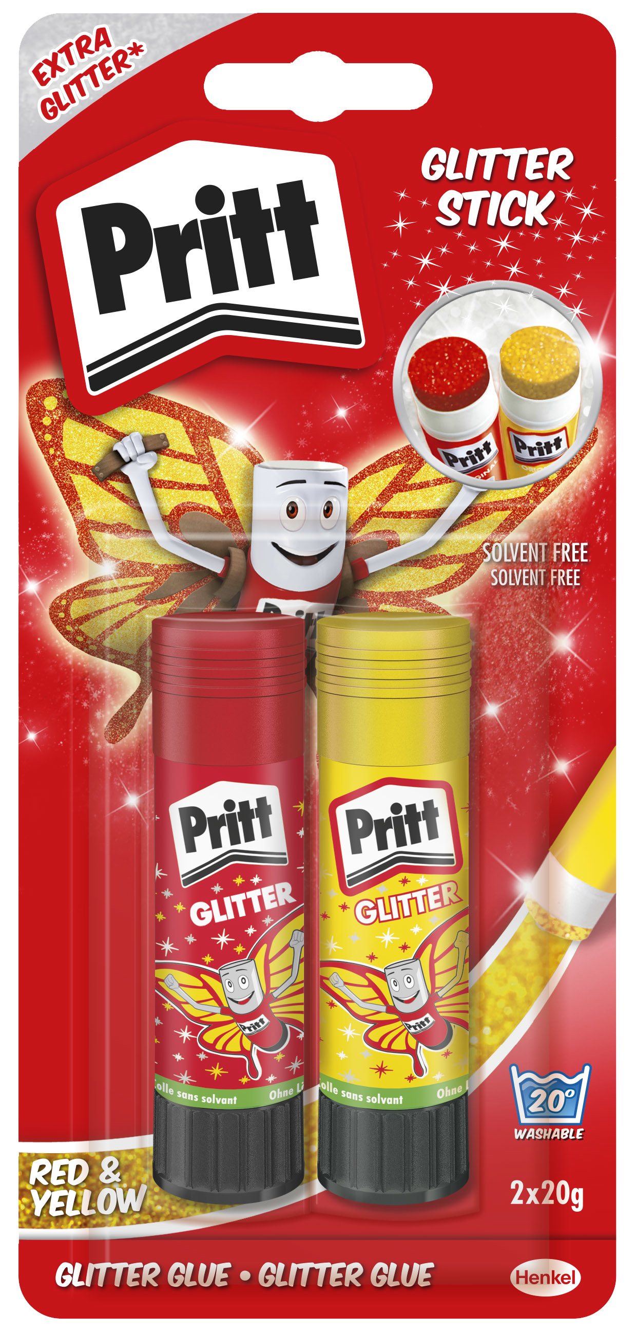 Le colle Pritt Glitter stick incollano e asciugano colorato. In rosso e giallo, donano un effetto scintillante dall’applicazione all’asciugatura. Con l’88% di ingredienti naturali*, la colla resistente è senza solventi e può essere lavata via a basse temperature: adatta e sicura per i bambini! Grazie alla formula a basso contenuto d’acqua, la colla stick bambini non crea increspature sulla carta – l’alleato perfetto per ogni tipo di lavoretto.