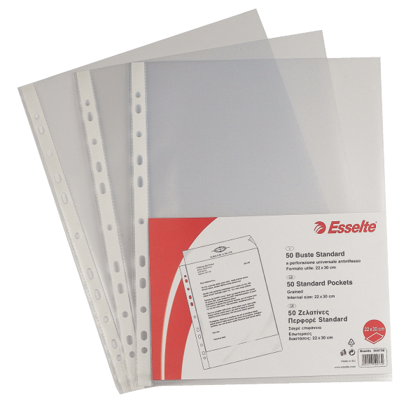Descrizione dettagliataBuste a perforazione Copy Safe StandardBuste antiriflesso particolarmente leggere e robuste, offrono il vantaggio di consentire l’archiviazione di un maggior numero di fogli.