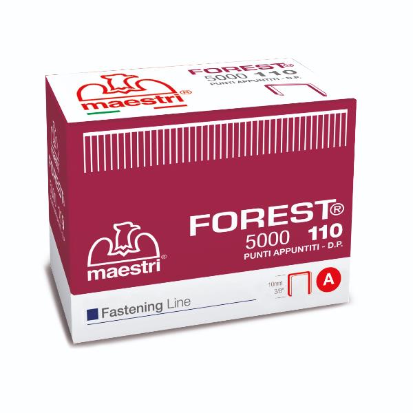 Tutti i punti metallici ro-ma Maestri si distinguono per la qualità della materia prima e per l’eccellenza di fabbricazione con particolare accuratezza all’angolo di piega ed alla simmetria del punto, unite al taglio delle punte per consentire una corretta penetrazione, costituiscono la garanzia qualitativa necessaria al buon funzionamento delle fissatrici. L’uso del punto originale ro-ma Maestri è sempre da preferirsi. La punta “FOREST” garantisce una ottima penetrazione ed un eccellente tenuta del punto nel legno.?