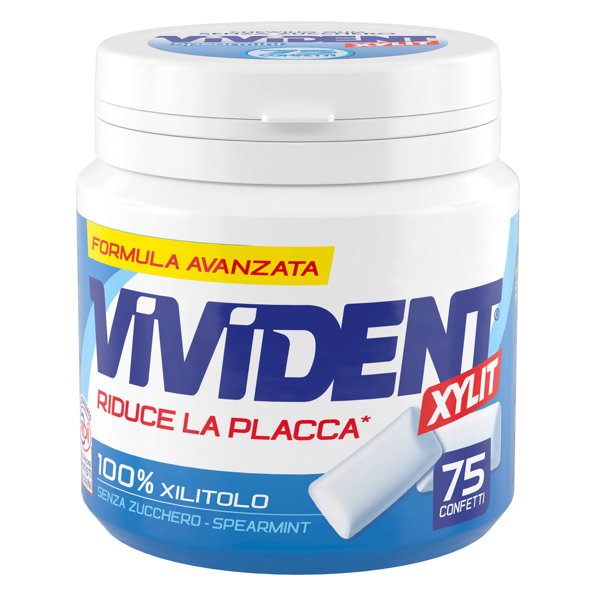 Vivident Xylit, con la sua formula avanzata 100% xilitolo, riduce la placca e aiuta a prenderti cura della tua igiene orale fuori