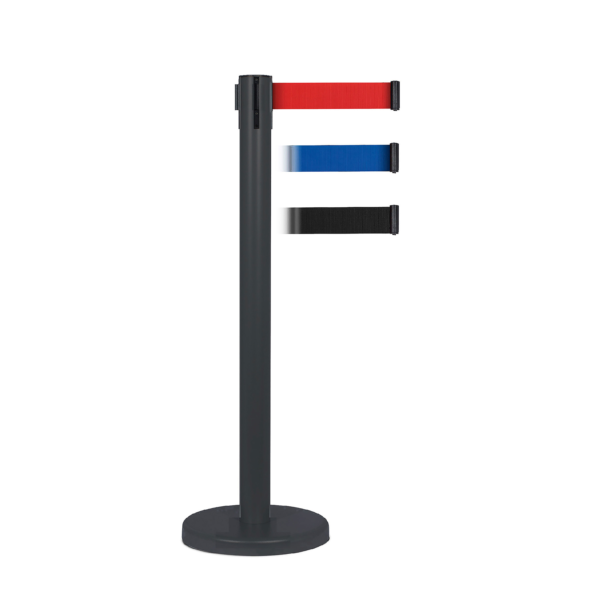 Descrizione dettagliataColonna con base in ferro verniciato nera con nastro nero da 250 cm.Materiale: metallo verniciato.Dimensioni: base Ø 32 cm, palo Ø 7 x 104 cm altura.Peso: 9 kg.