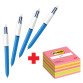 Descrizione dettagliataPenna 4 colori Original: 4 colori in un’unica penna: Nero, Blu, Rosso e VerdeCubo Post it: contiene 450 foglietti riposizionabili con adesivo standard formato 76 x 76 mm