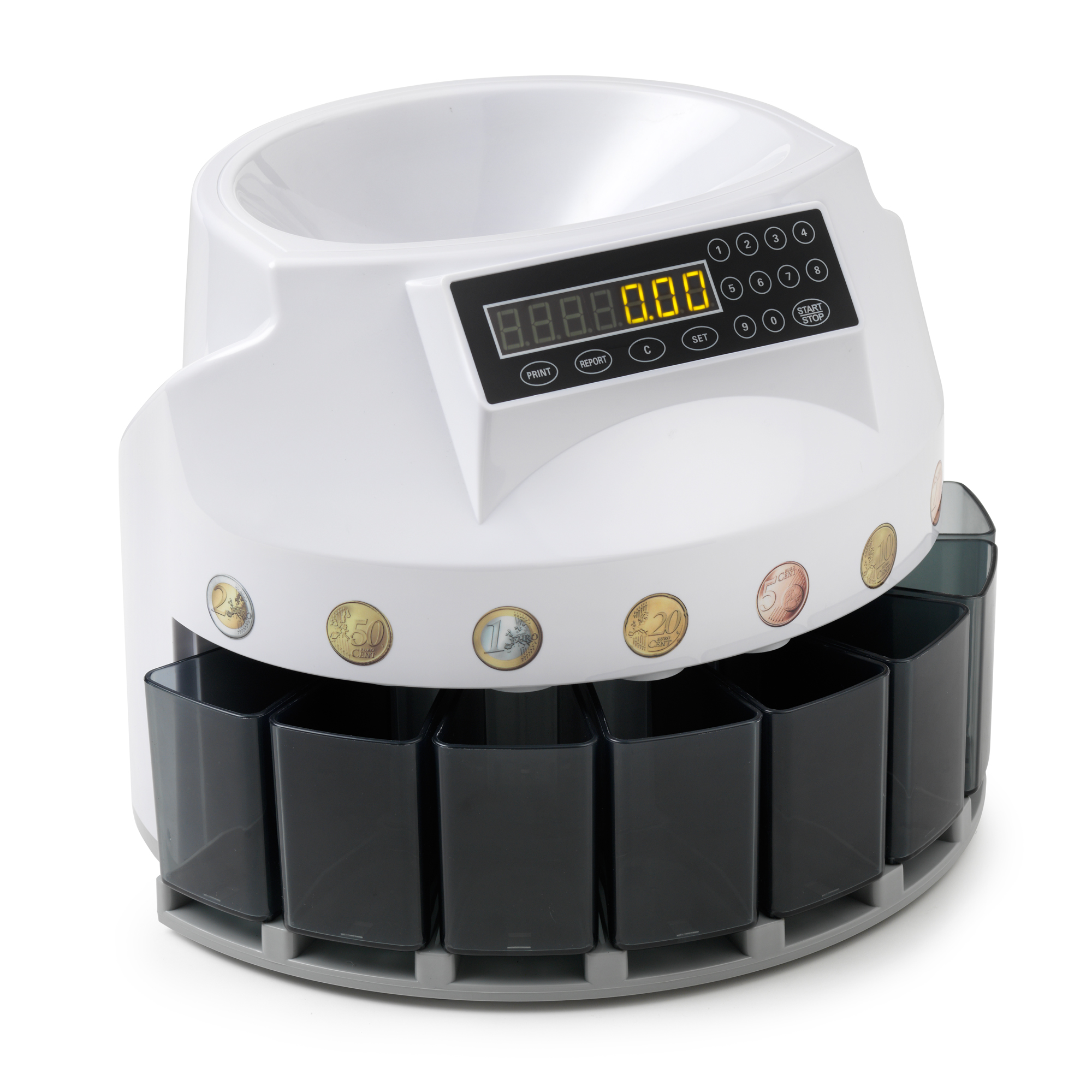 Conta dividi monete Euro a 8 cassetti, di facile utilizzo, silenziosa e veloce. Funzioni: BATCH: permette di impostare una quantità predefinita di monete da contare; ogni volta che il numero selezionato viene raggiunto la macchina si ferma. In caso di utilizzo con conteggio libero (funzione batch non attivata), l’arresto avverrà quando premuto il tasto START/STOP.
