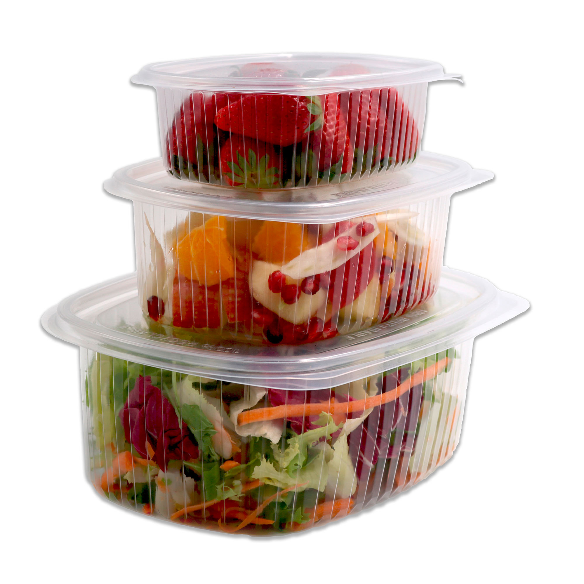 Pratici contenitori ermetici in polipropilene con coperchio, per congelare, conservare, riscaldare. Impilabili, 100% riciclabili, 100% riutilizzabili. Temperatura max congelatore -20°C, 120°c nel microonde. Lavabili in lavastoviglie. Non utilizzare nel forno tradizionale