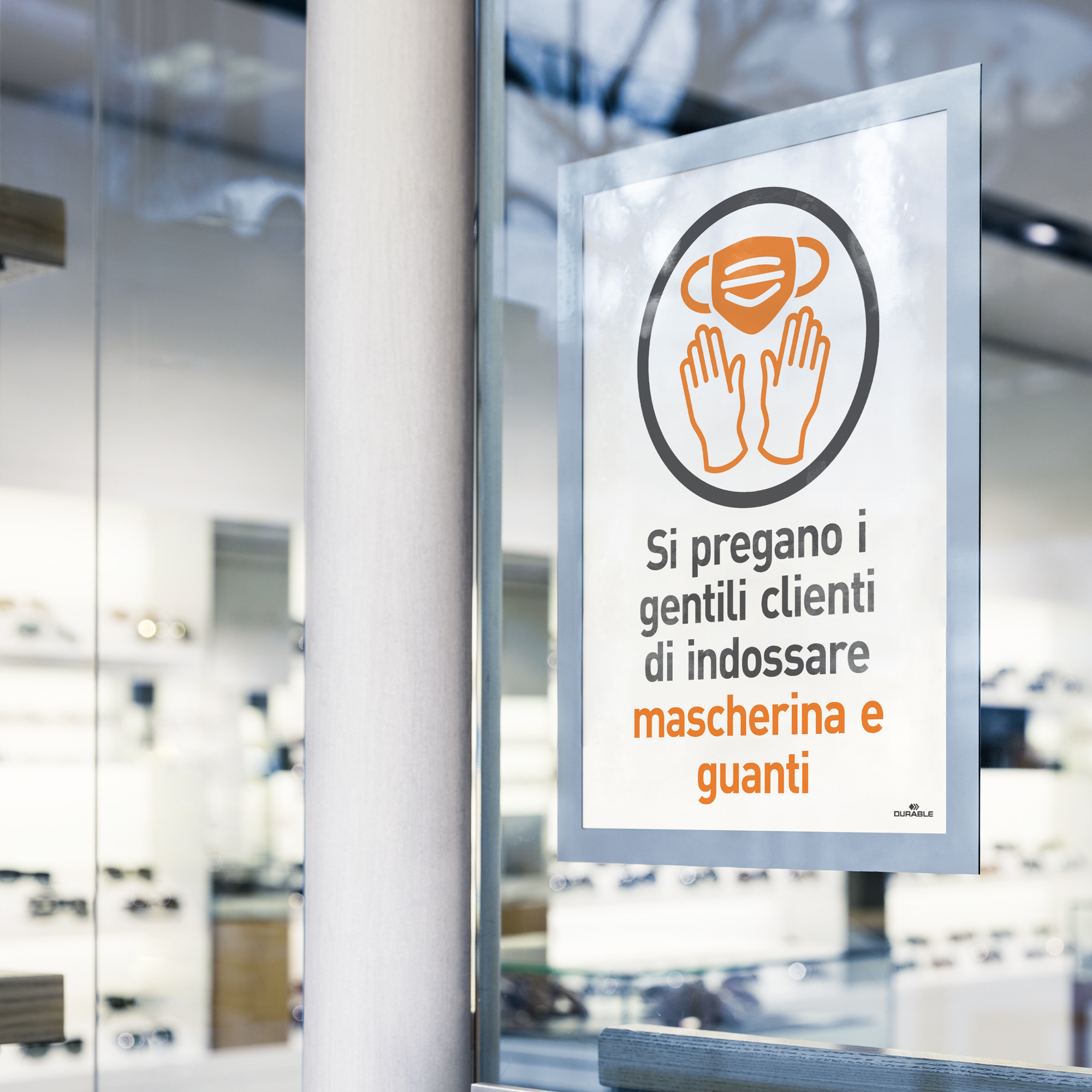 DURAFRAME SUN è la cornice espositiva per le superfici vetrate esposte alla luce diretta del sole ideale per esporre pubblicità e/o informazioni.