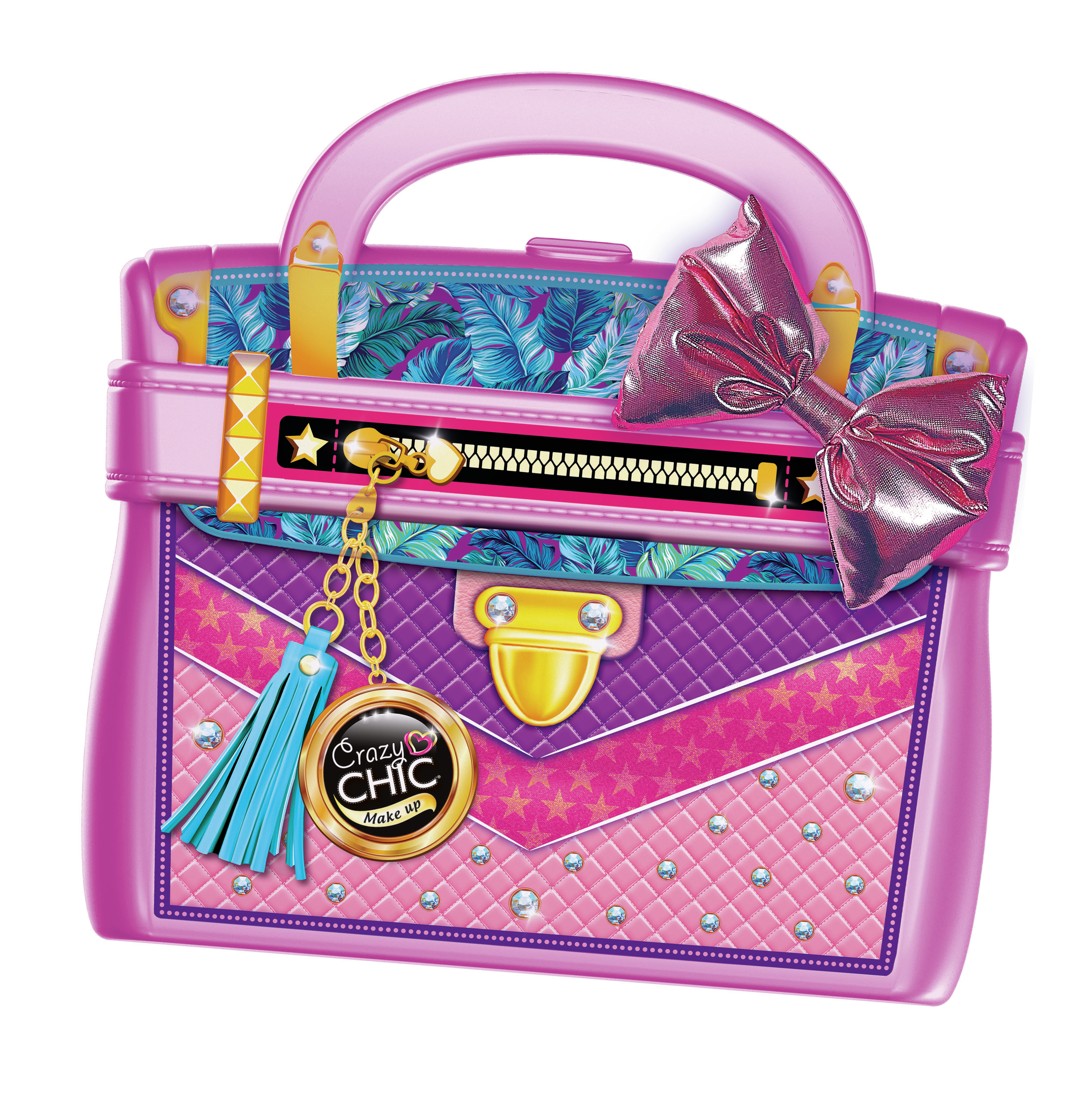 Una borsa all'ultima moda che racchiude in sé il segreto di bellezza di ogni Crazy Girl! Tantissimi trucchi per divertirsi e creare un make up perfetto per ogni occasione. La speciale bag ha un design accattivante, con una texture davvero chic e un prezioso fiocco in tessuto super glam! Le bambine potranno sperimentare tanti make up diversi grazie al ricco assortimento di trucchi: 9 lip gloss, 11 ombretti, 1 rossetto, 1 smalto e 2 applicatori. Il pratico specchietto removibile può essere portato sempre con sé, per controllare il make up in ogni momento. Un gioco che stimola la creatività delle bambine in campo beauty, in piena sicurezza.