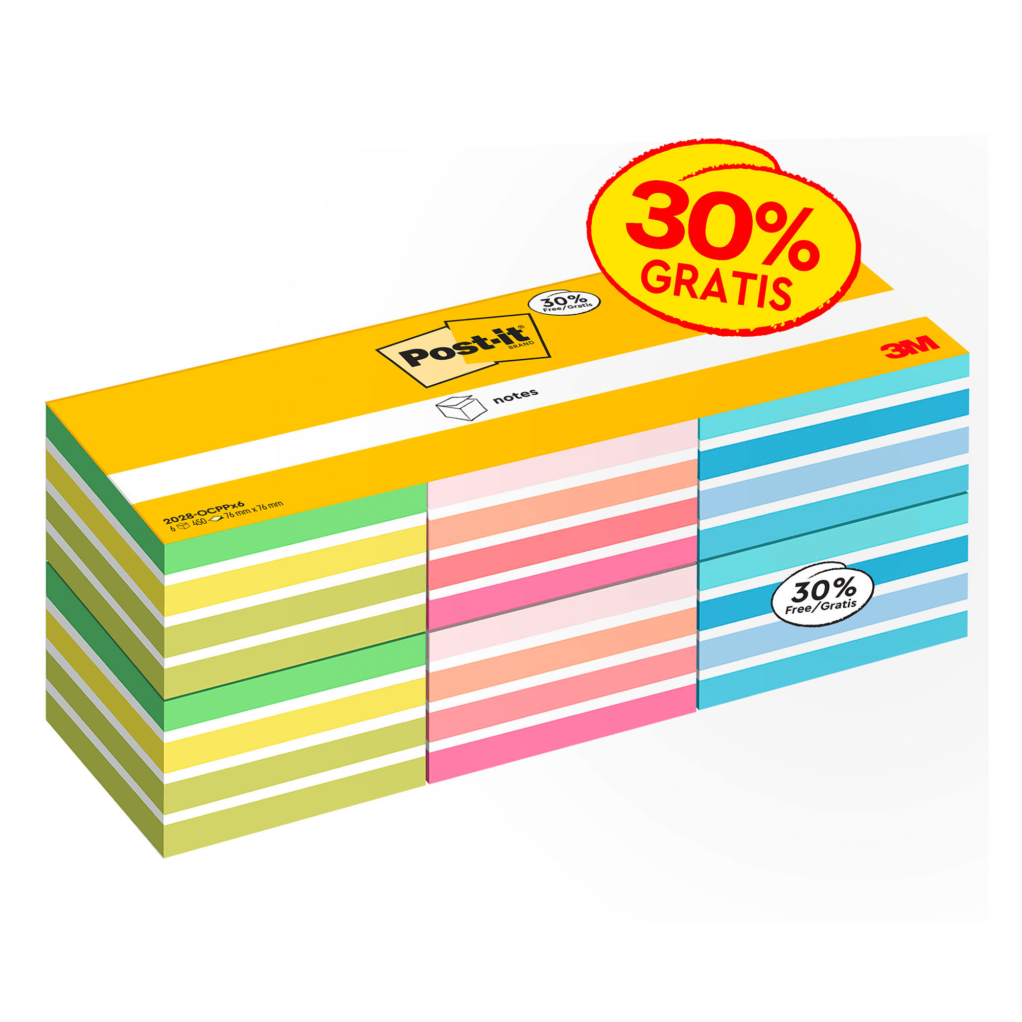 Confezione risparmio da 6 cubi per un totale di 450 foglietti riposizionabili per cubo.