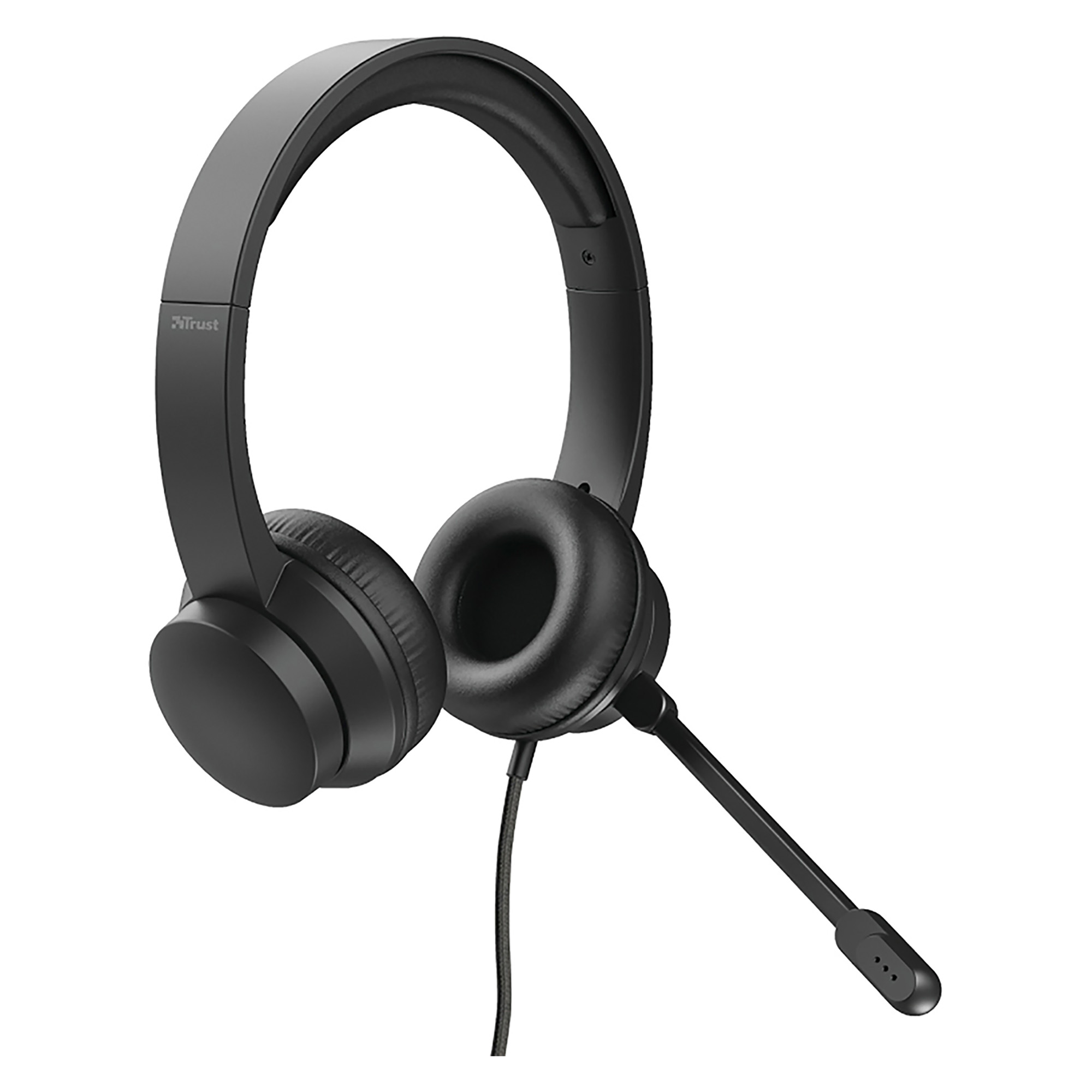 Compatte cuffie on-ear USB con morbidi padiglioni imbottiti e archetto regolabile.