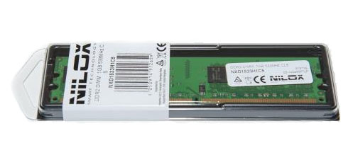 Nilox 1GB PC2-4200. Componente per: PC/server, RAM installata: 1 GB, Configurazione della memoria (moduli x dimensione): 1 x 1 GB, Tipo di RAM: DDR2, Velocità memoria: 533 MHz, Fattore di forma memoria: 240-pin DIMM, Latenza CAS: 5, Colore del prodotto: Verde