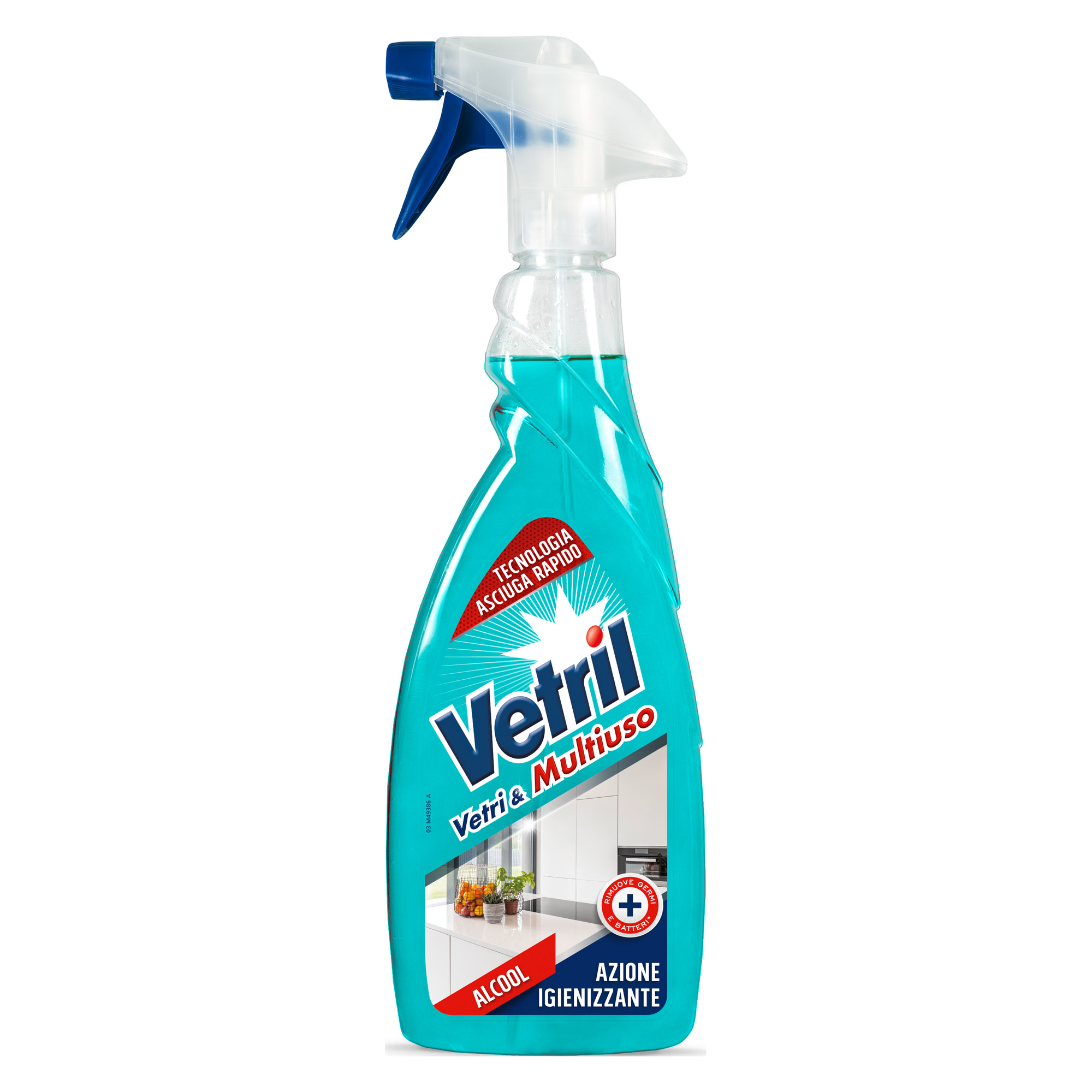 Pulisce e igienizza le superfici contribuendo a rimuovere germi e batteri (rimozione meccanica di germi e batteri, non è un disinfettante), senza bisogno di risciacquare. Consigliato per vetri, specchi, sanitari e piastrelle. Flacone da 650 ml, con vaporizzatore