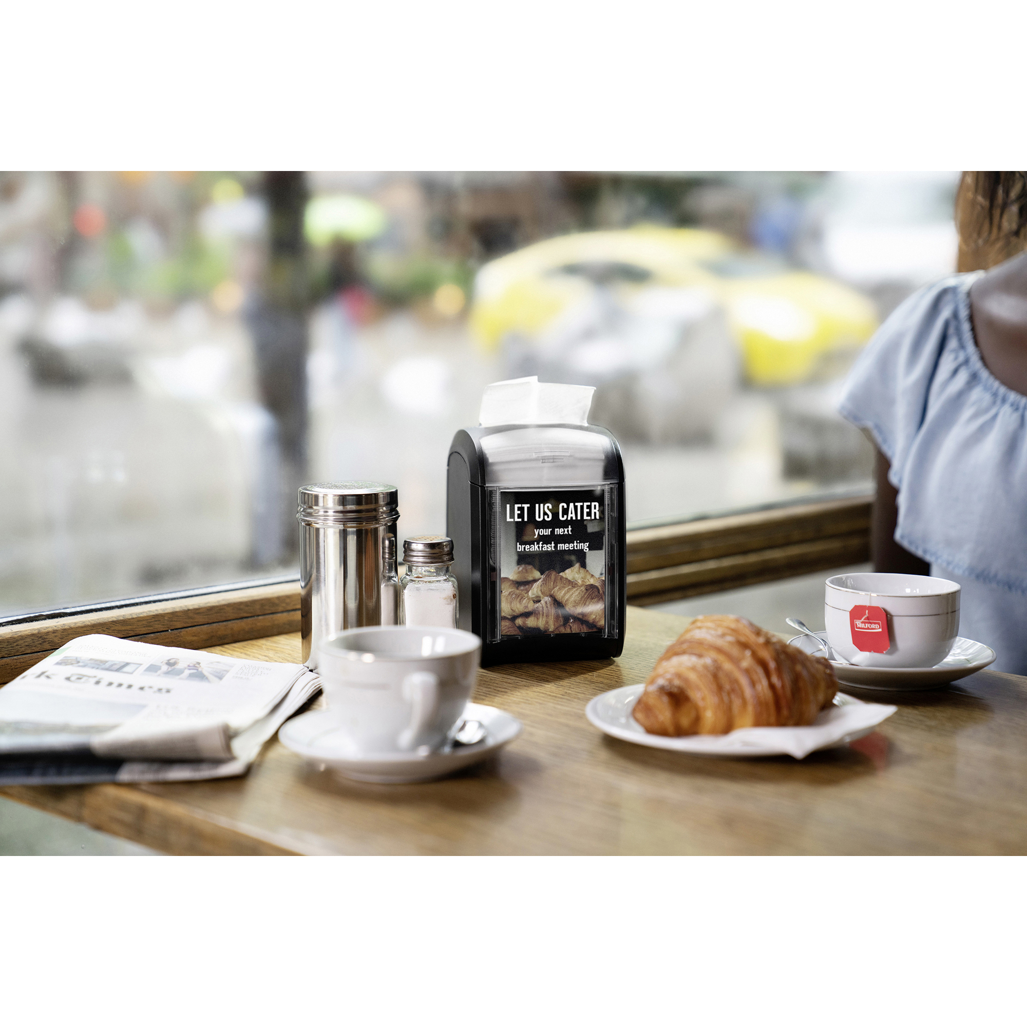 L’indicatore di livello mostra quando è il momento di ricaricare, garantendo una disponibilità continua e costante di tovaglioli. In questo modo non si correrà più il rischio che i tovaglioli si esauriscano nelle ore di punta della giornata.