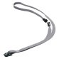 Cordoncino in tessuto con chiusura di sicurezza e clip finale per l'aggancio al portabadge.