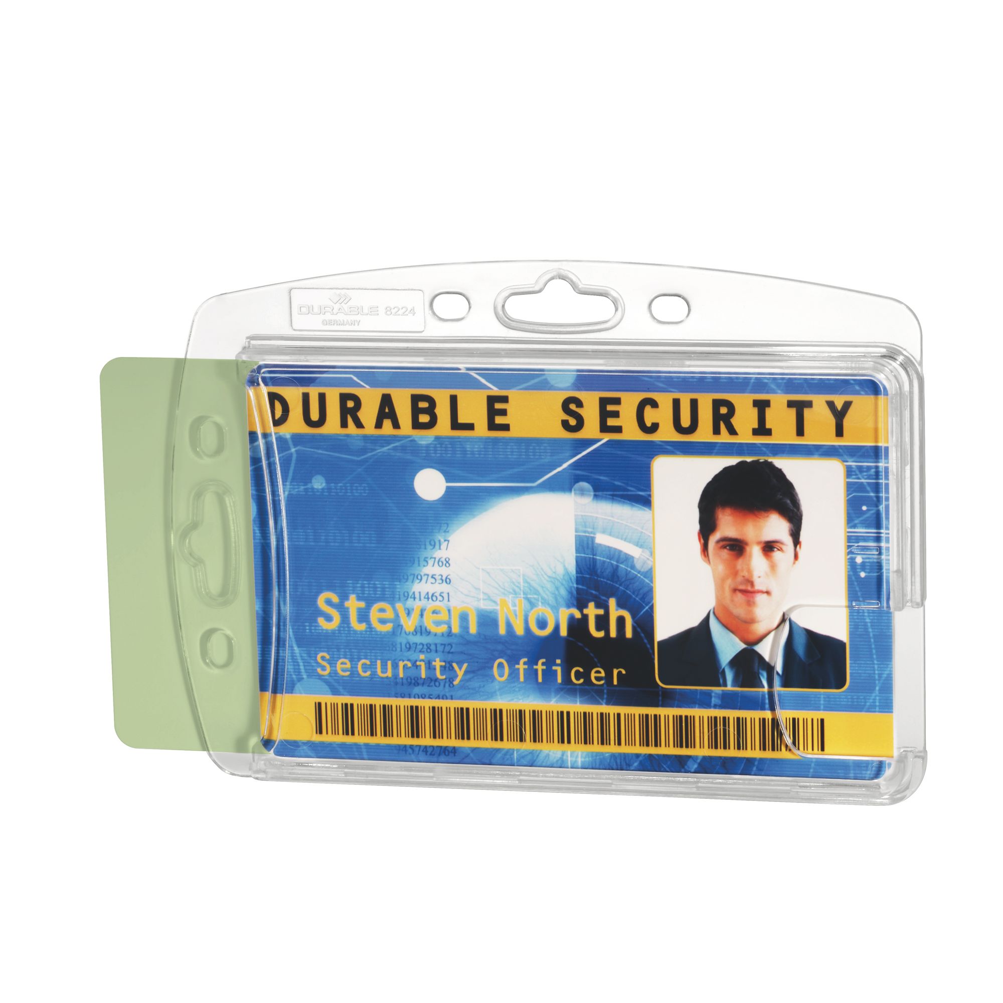 Dotato di fermi interni per mantenere in posizione i badge una volta inseriti e di lunette che ne facilitano la rimozione.